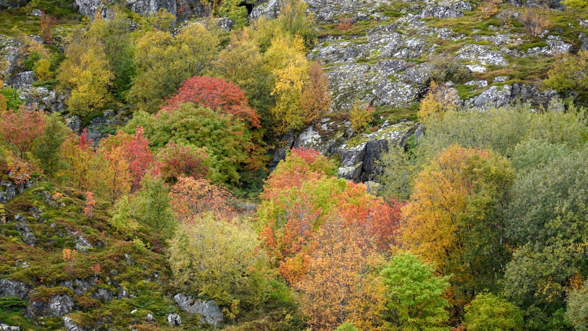 Herbstliche Berghänge gegenüber des Hafens.