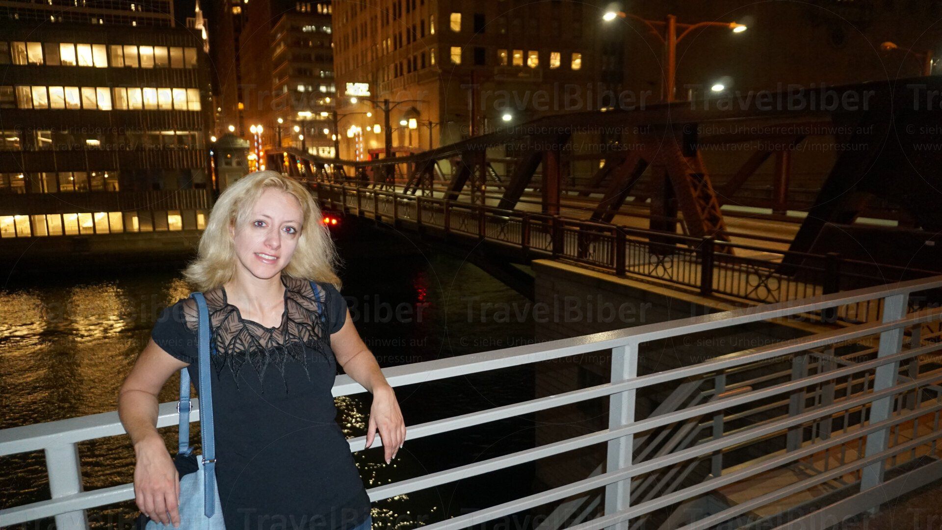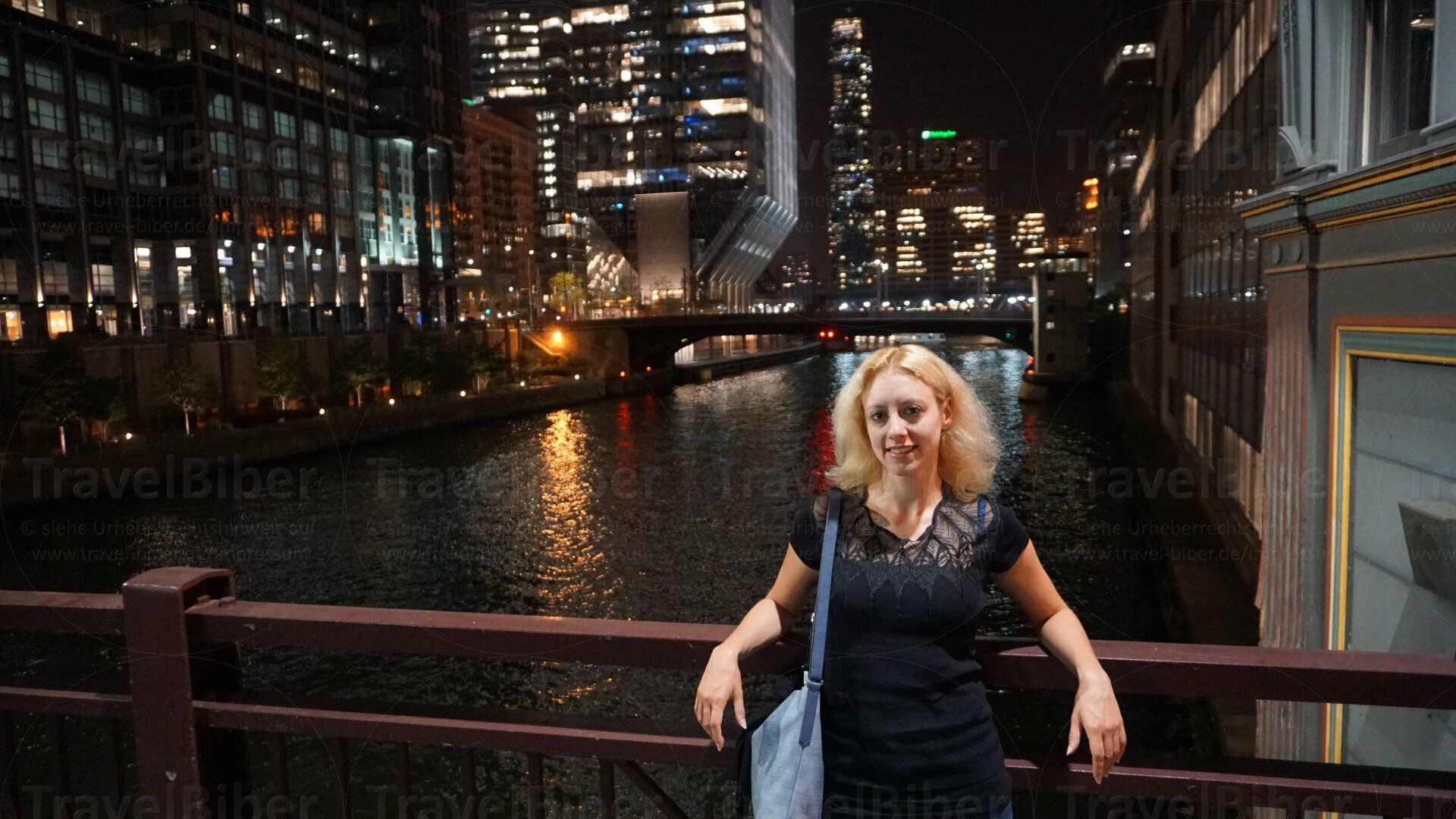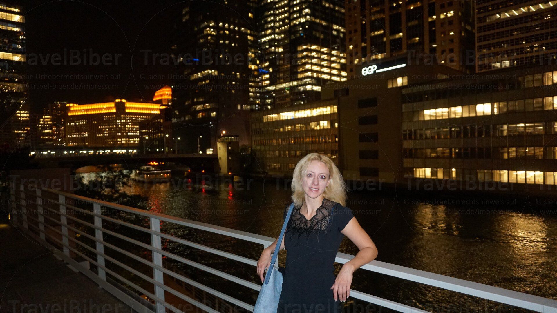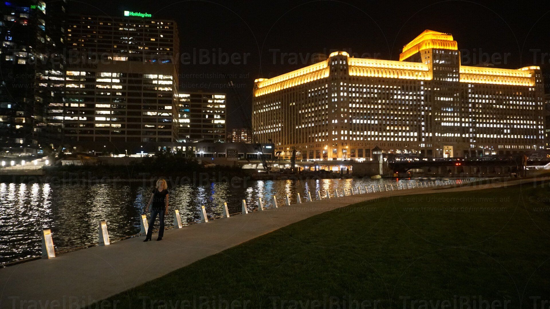 Abends unterwegs am Chicago River. Entlang des Flusses gibt es auch viele Bars, Kneipen und Restaurants.