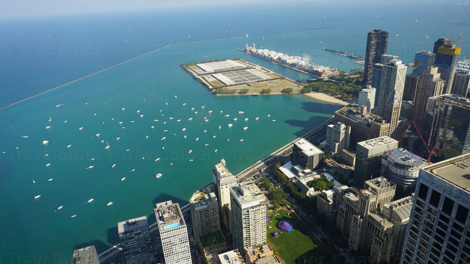 Der Willis Tower, unverkennbar mit seinen zwei Antennen, und die andere Möglichkeit die Stadt von oben zu sehen.