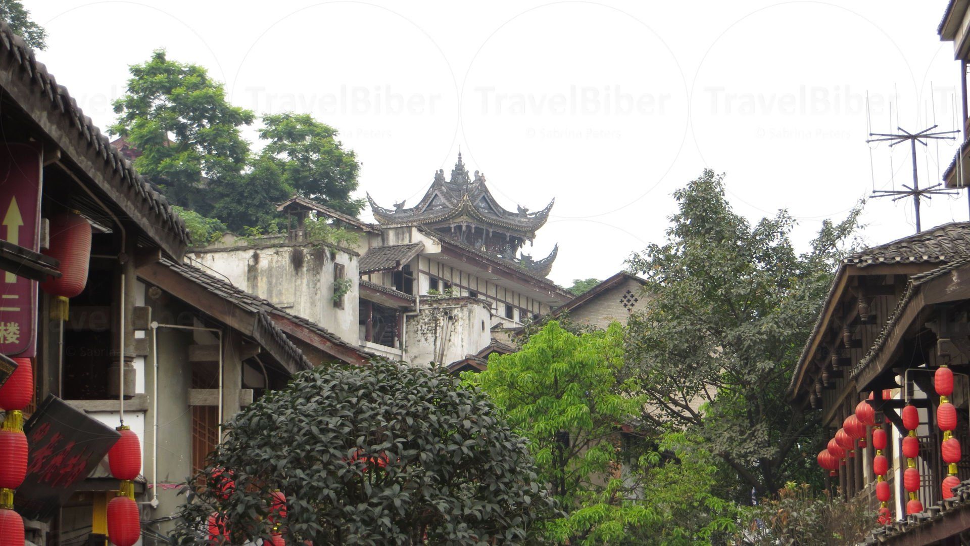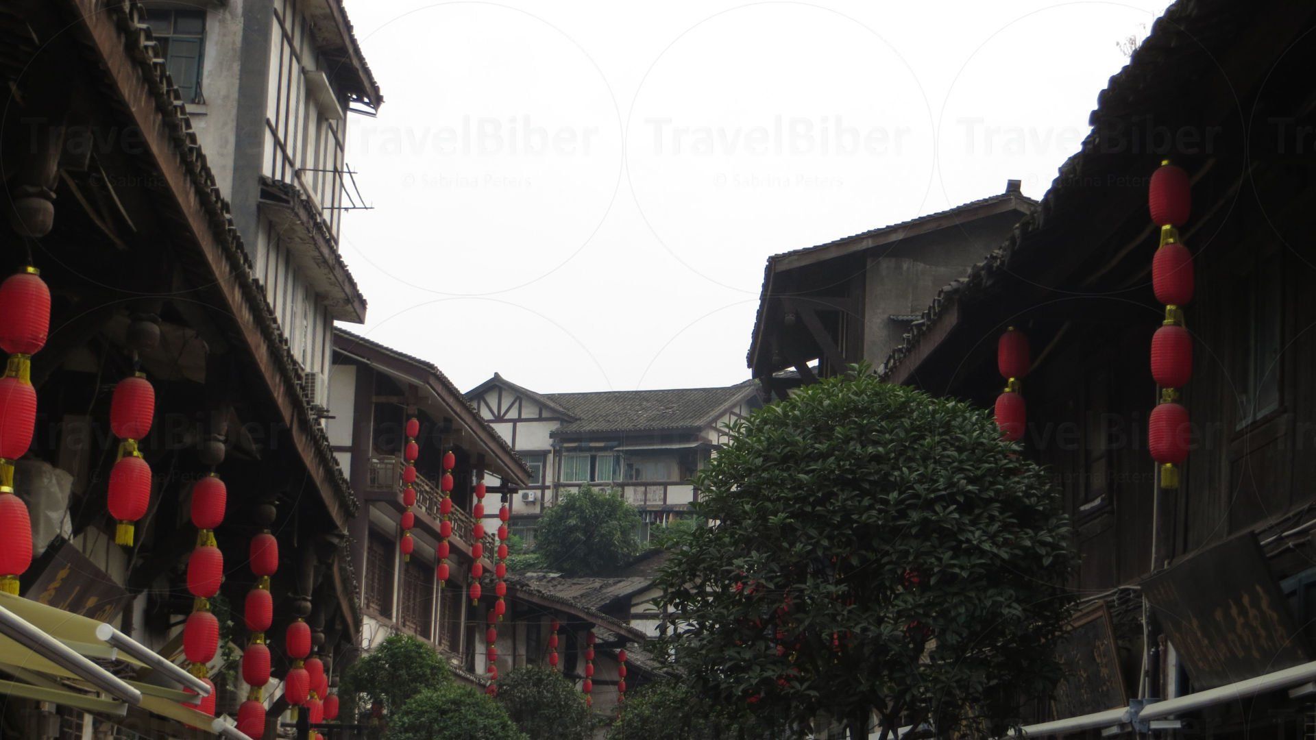 In der von Hochhäusern geprägten Stadt gibt es aber auch noch alte traditionelle Viertel; wie hier zu sehen ist in einem Teil der Innenstadt von Chongqing.