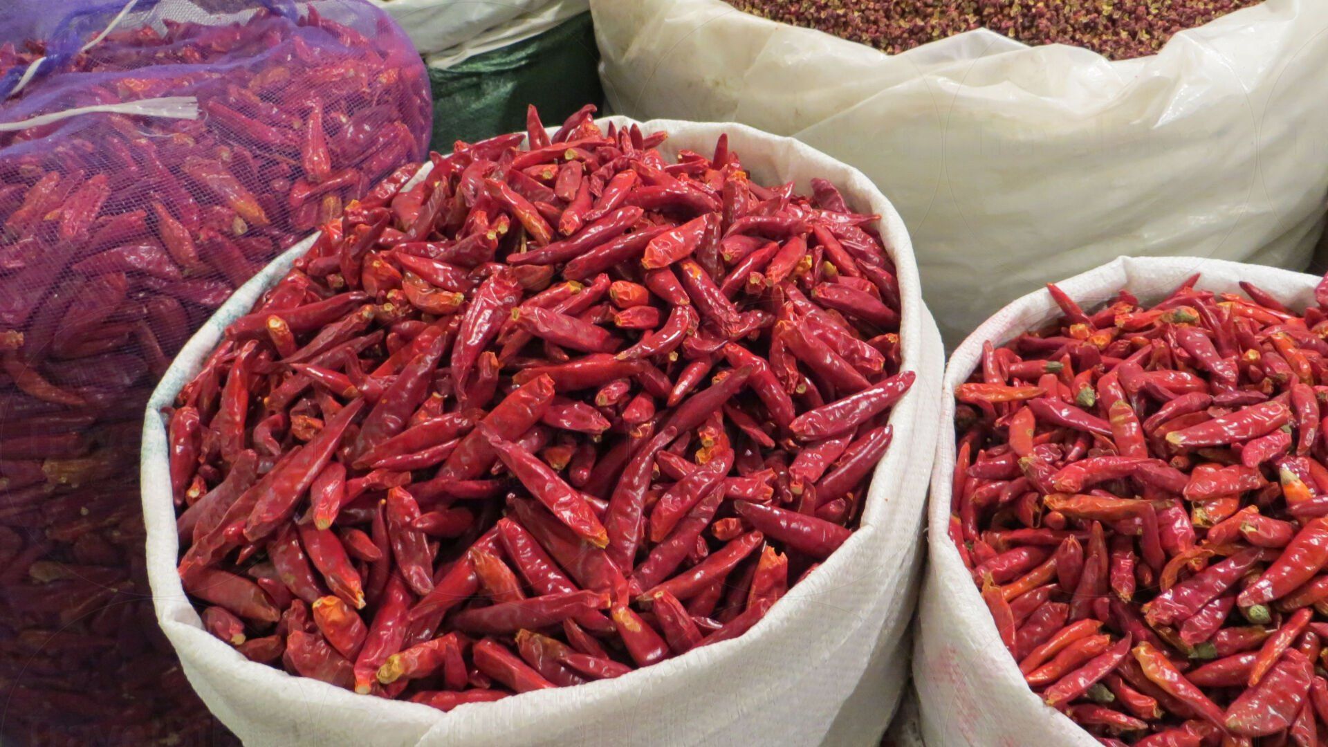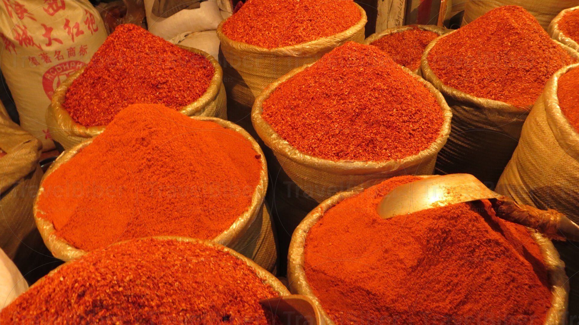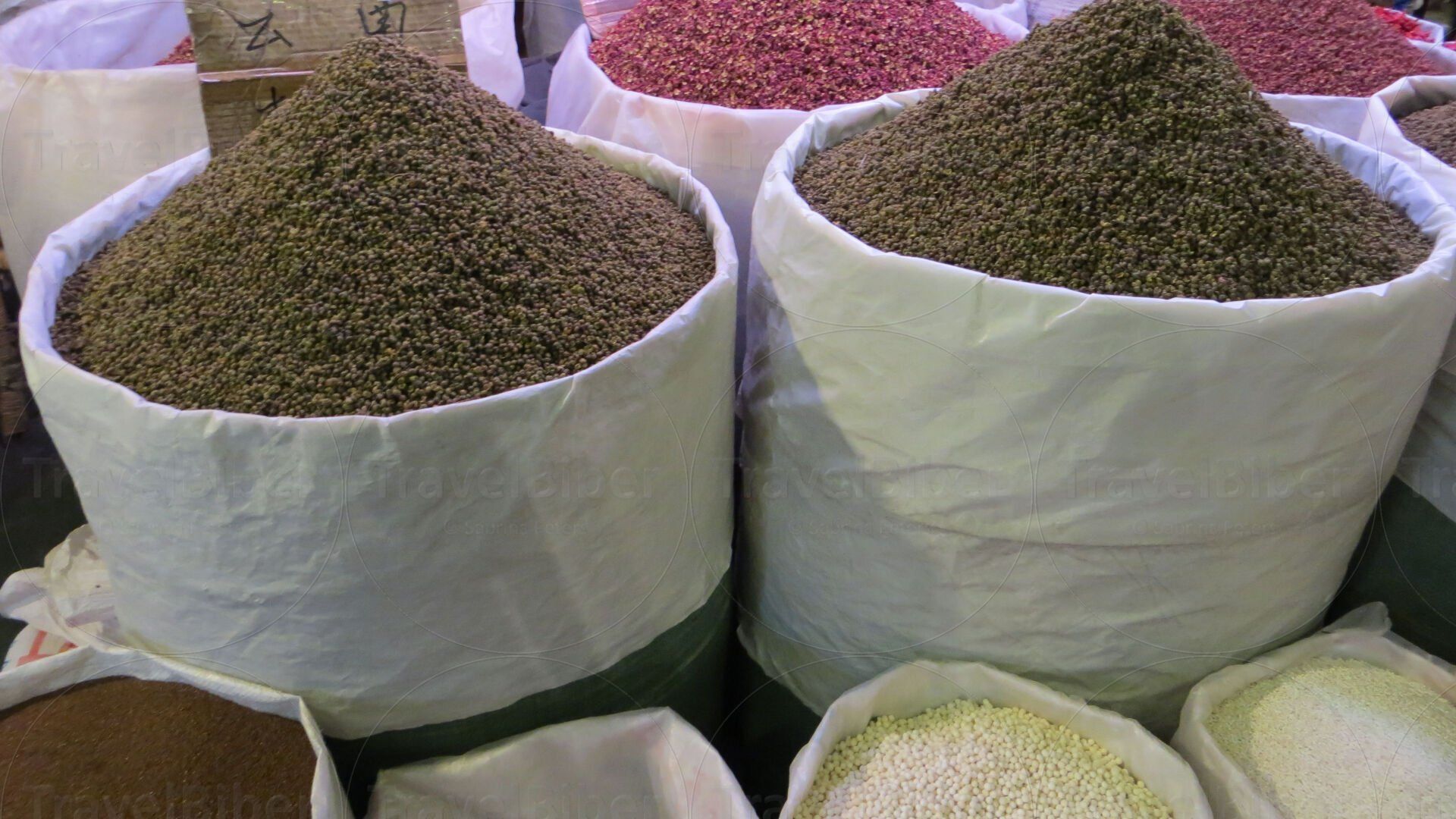 In einer riesigen Markthalle Gewürze in Hülle und Fülle.