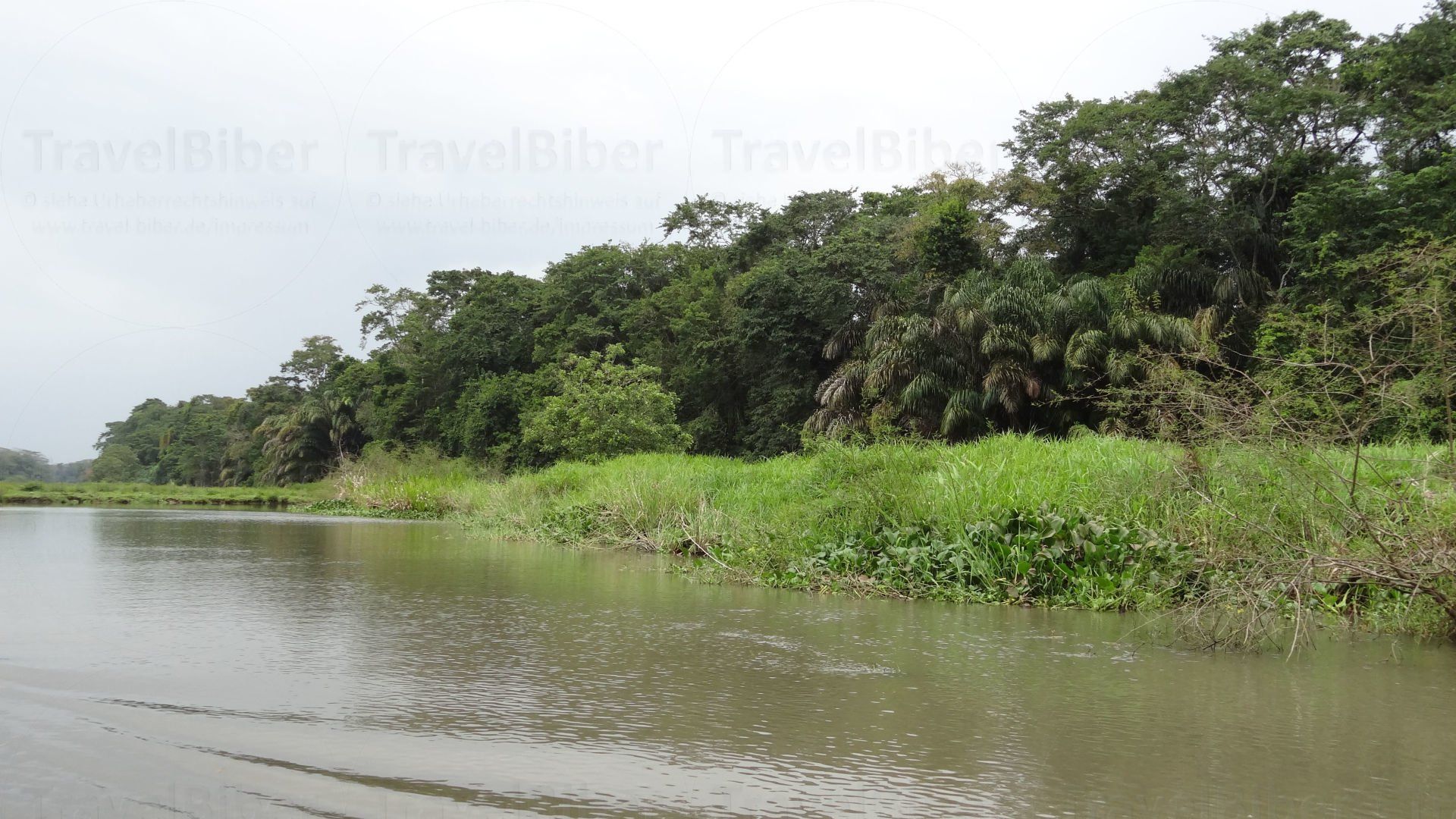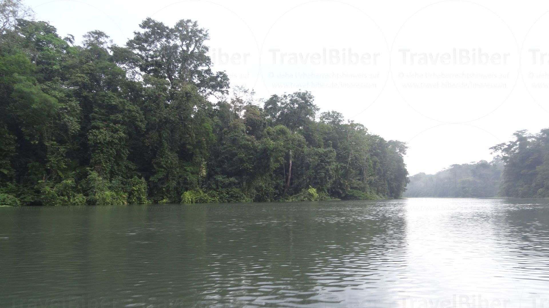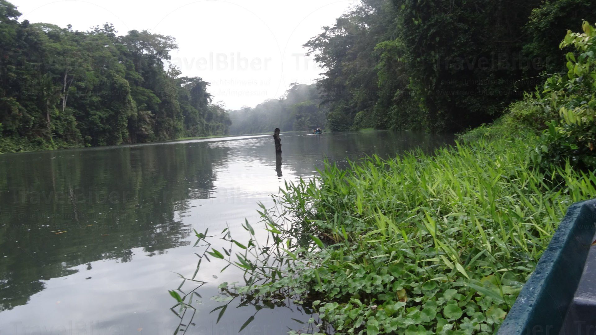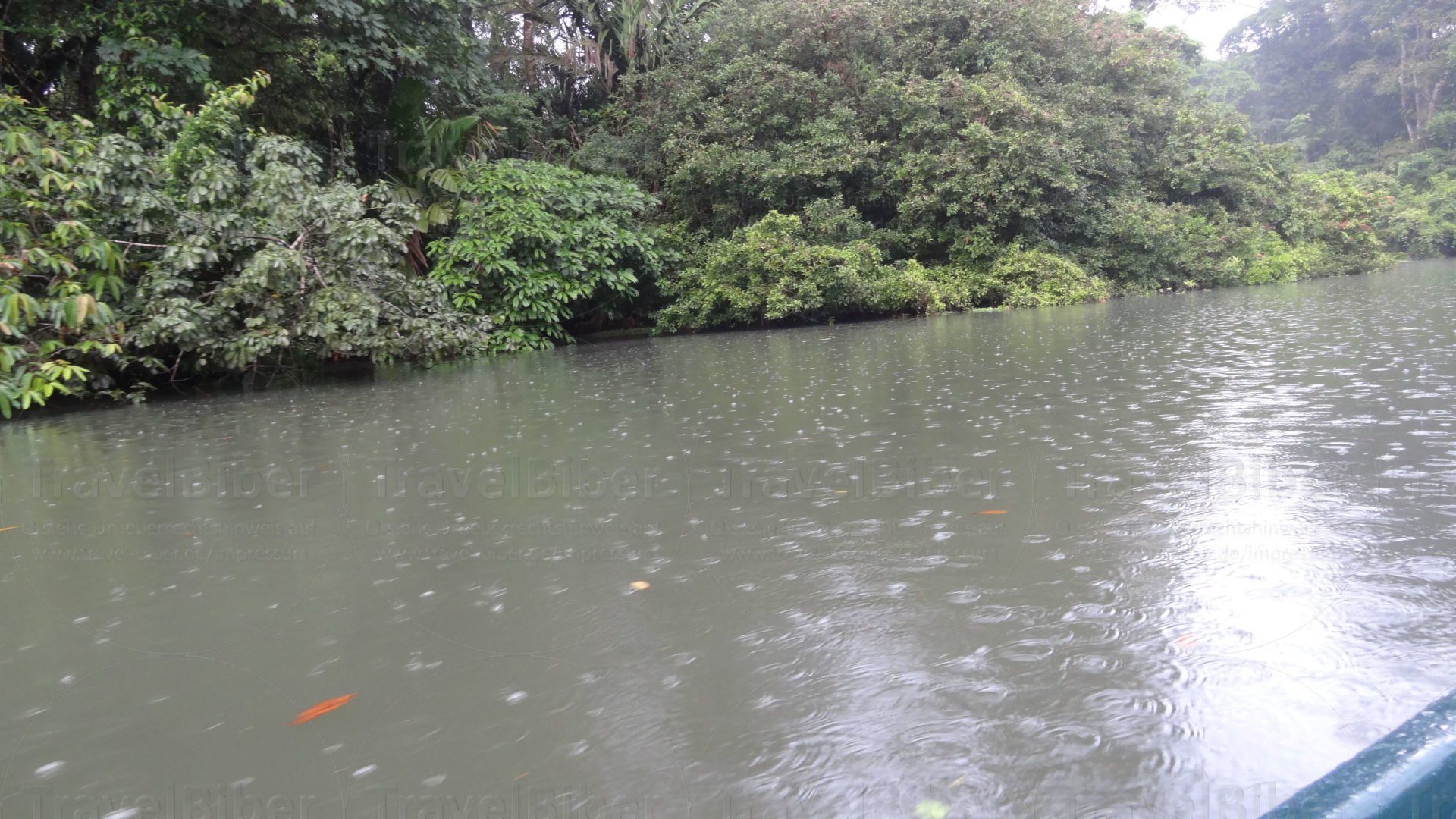 Bootsfahrt durch die Kanäle des Tortuguero National Parks, früh morgens bei starkem Regenfall, was aber umso autentischer machte