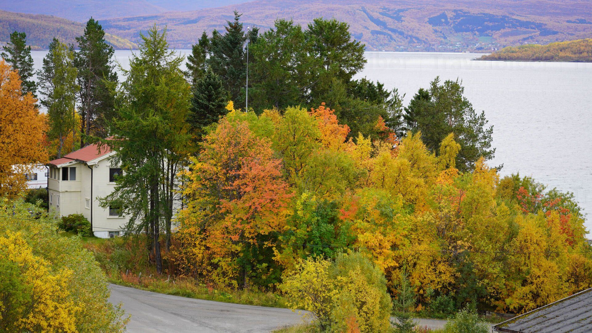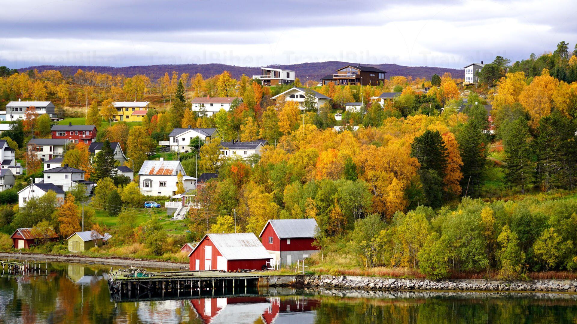 Hübsche Häuser in herbstlicher Kulisse in Finnsnes.