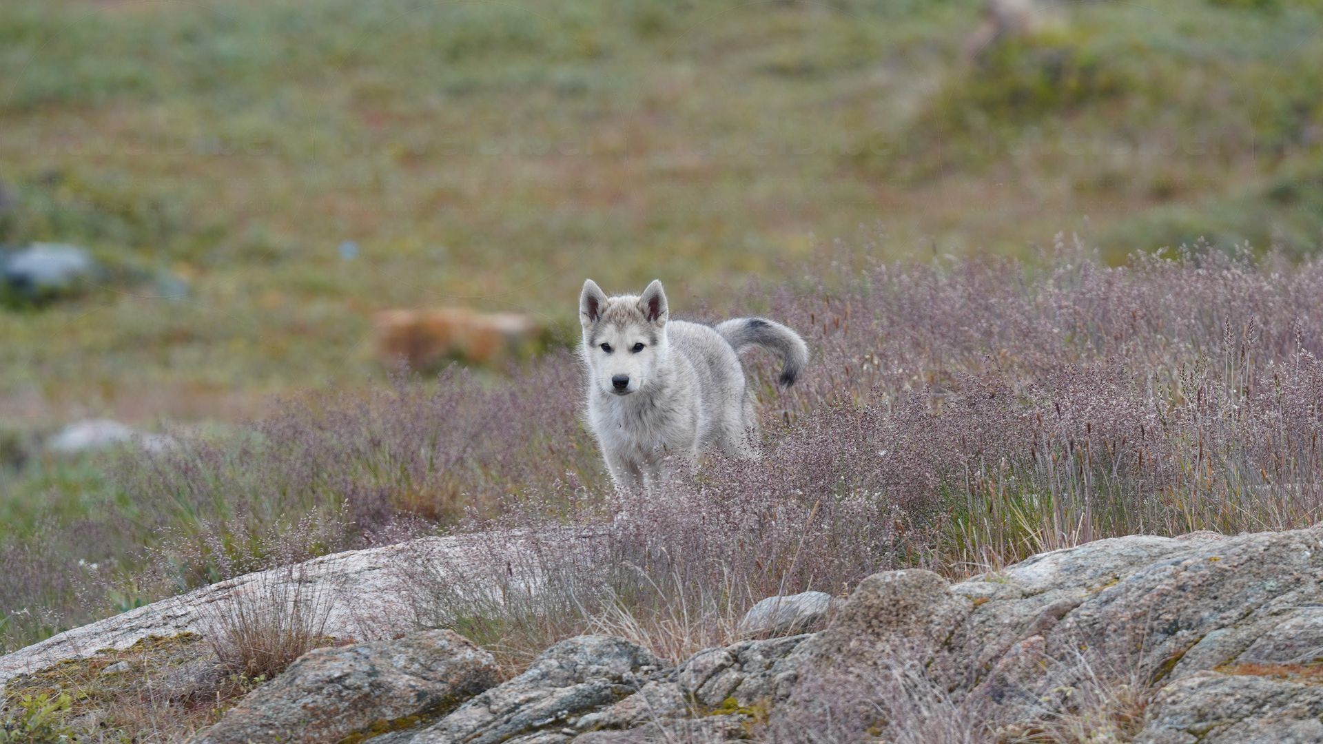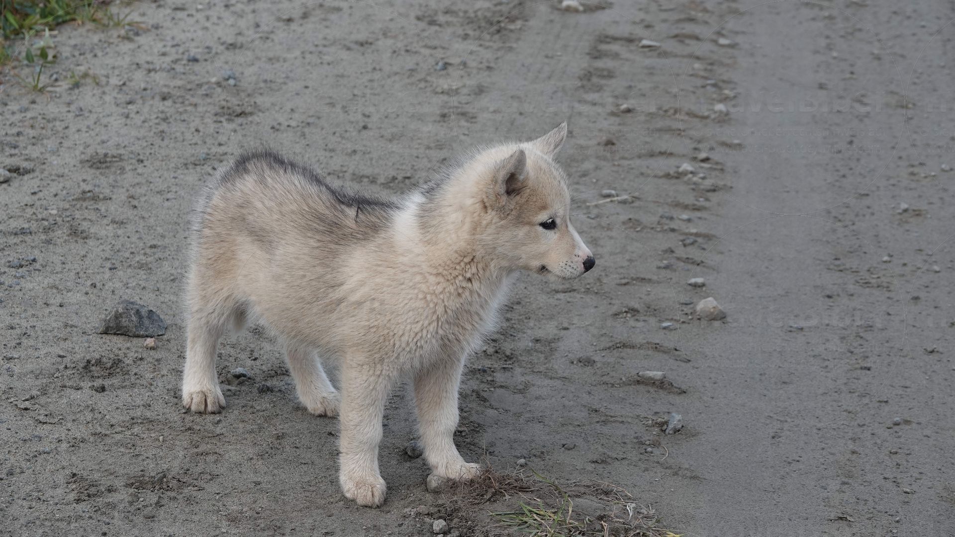 Dann geht es wieder zu den Hundeplätzen hinter dem Ort Sisimiut, die ersten freilaufenden Schlittenhundewelpen.