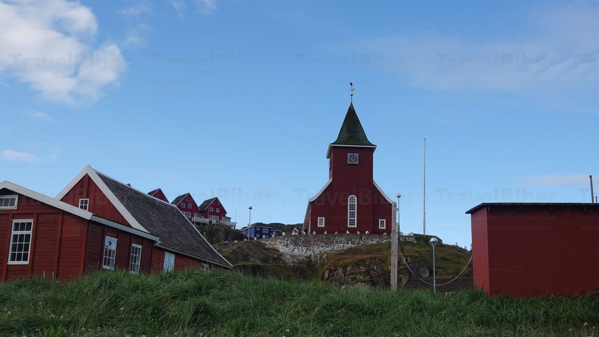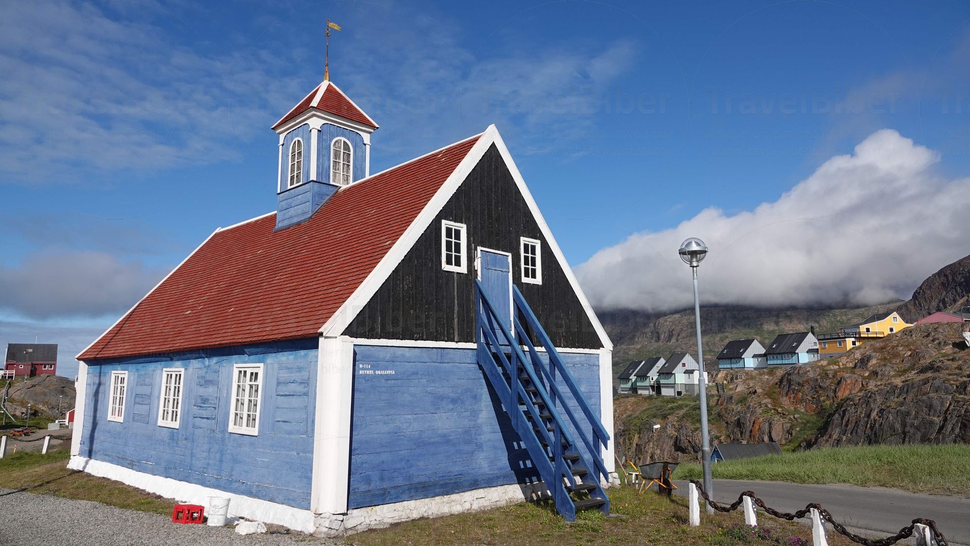 Nochmal Spaziergang durch das alte Viertel. Hier sieht man nochmal die Berthel-Kirche, die älteste Holzkirche Grönlands, 1775 geweiht.