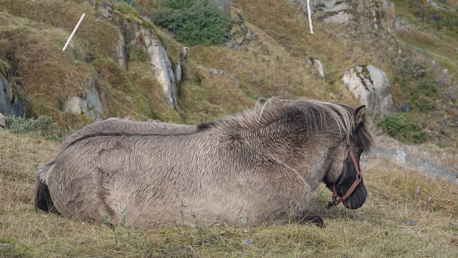 Sogar Pferde gibt's hier, eher ungewöhnlich tatsächlich.