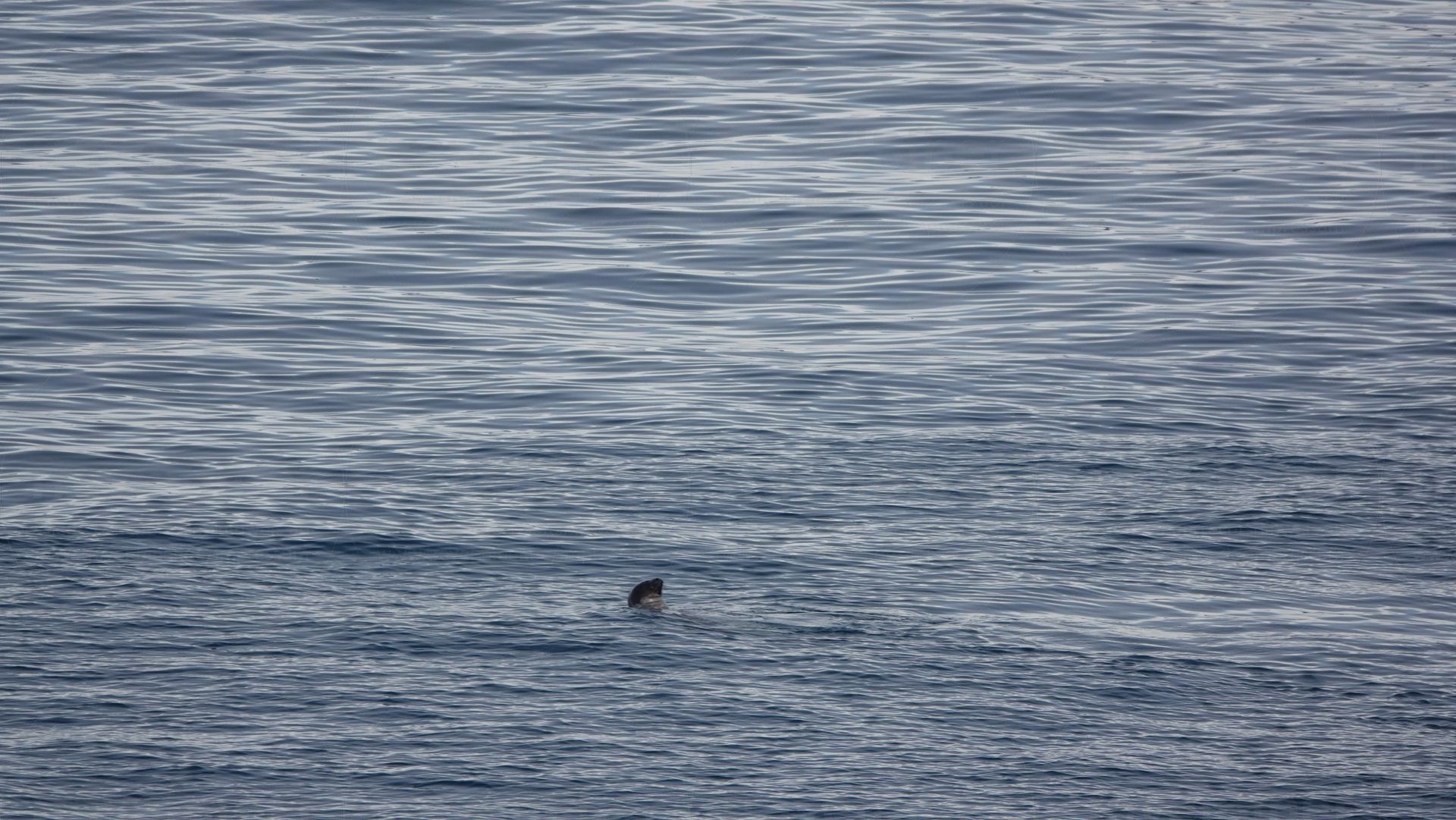 Eine Robbe guckt aus dem Wasser. Sie werden hier gejagt und sind entsprechend vorsichtig.