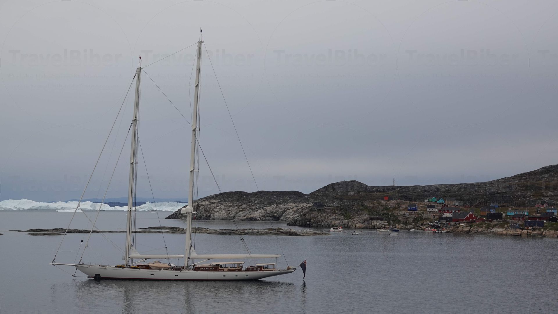 Ankunft am Ankerplatz vor Ilimanaq. In der Ferne erkennt man den Eisfjord Kangia.