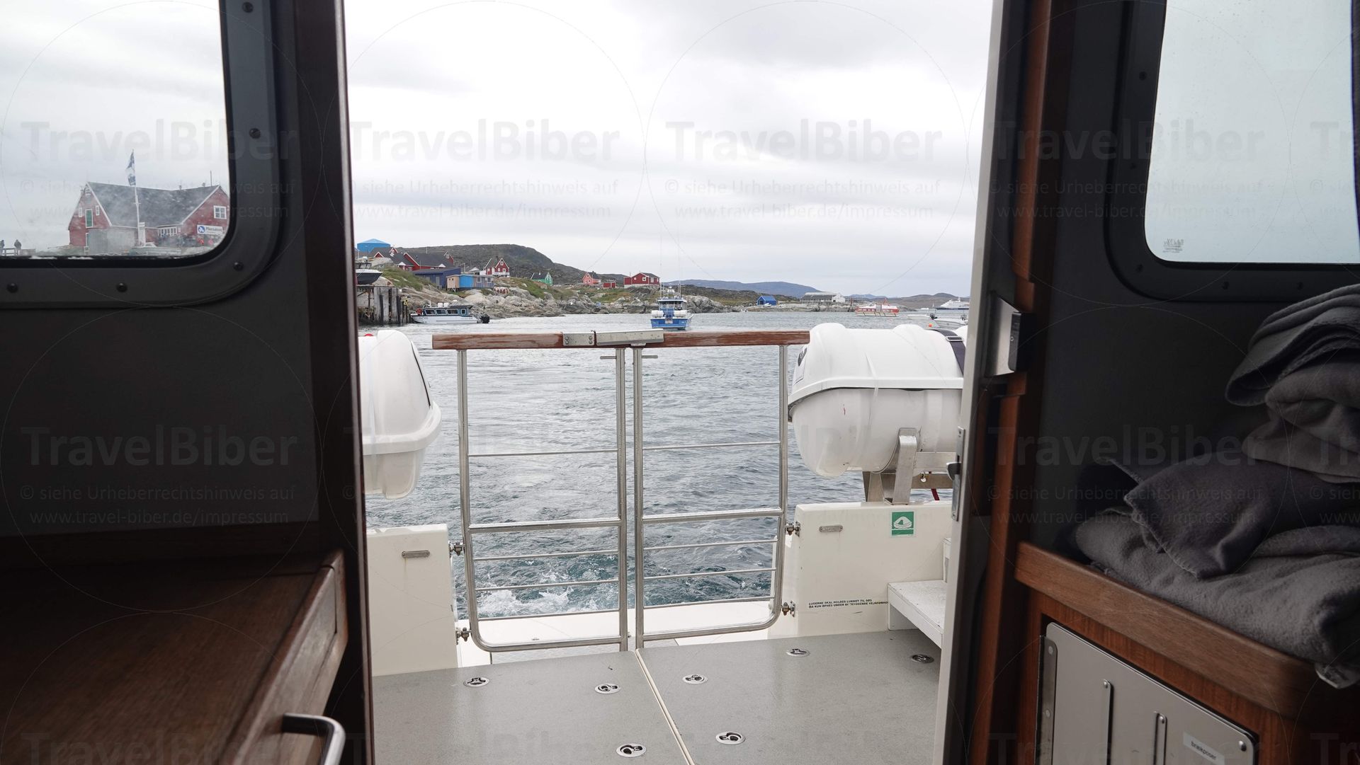 Kurz vor Mittag geht sie dann endlich los, die Bootsfahrt zum Eisfjord Kangia,