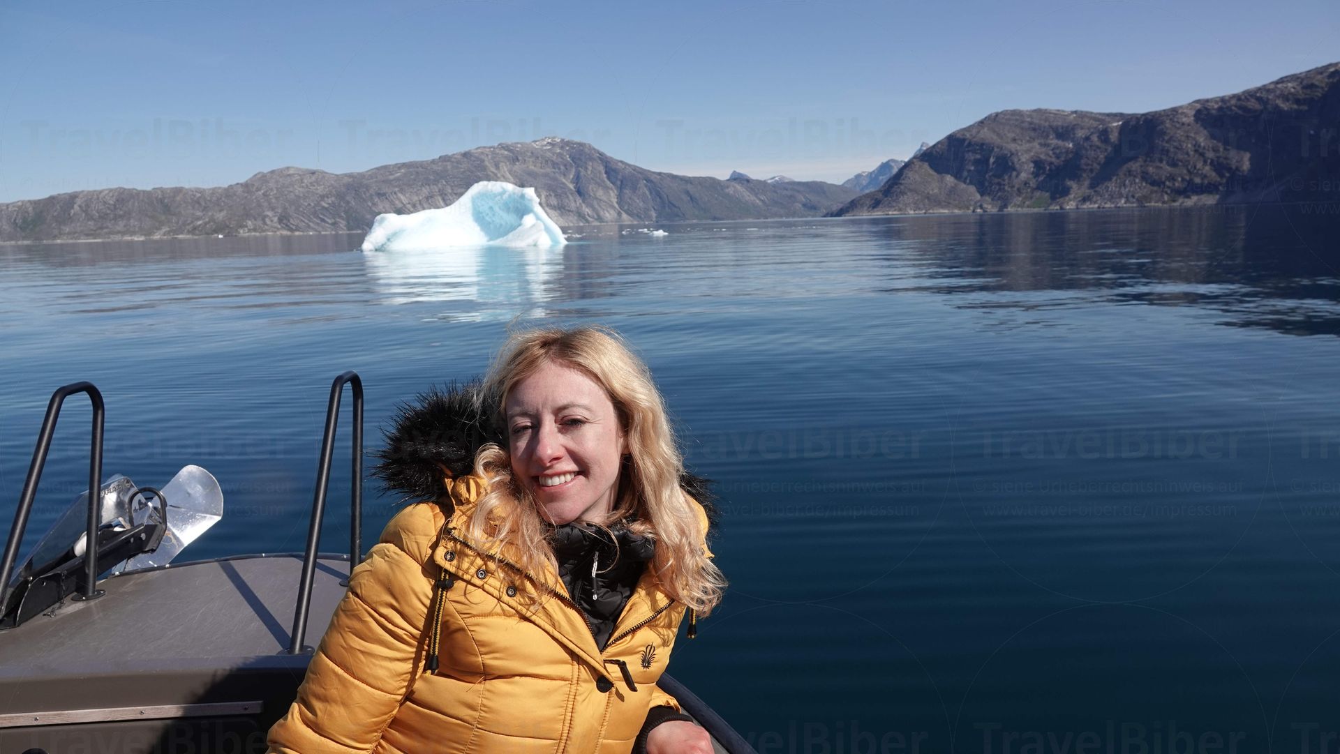 Mit dem kleinen Boot kommt man recht nah heran an den Eisberg.