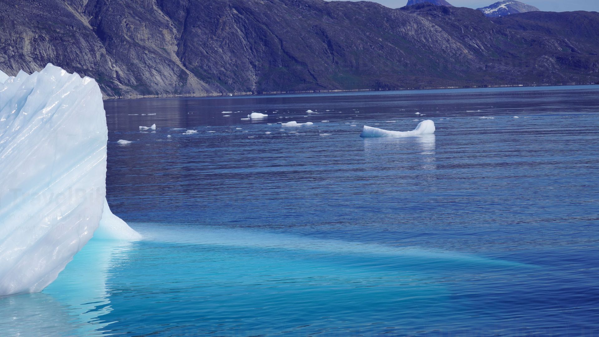 Ein kleiner Eisberg schwimmt im Fjord.