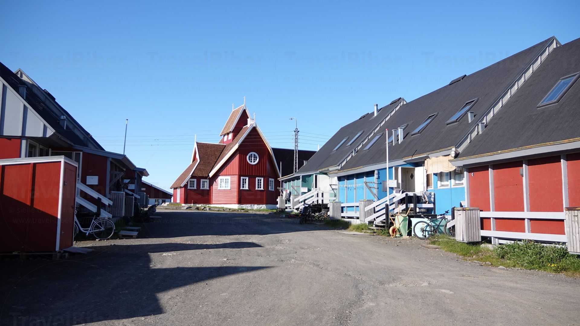 von ein bisschen weiter weg und ein paar Häuser des kleinen Ortes mit ungefähr achthundertfünfzig Einwohnern und somit zweitkleinste Stadt Grönlands.