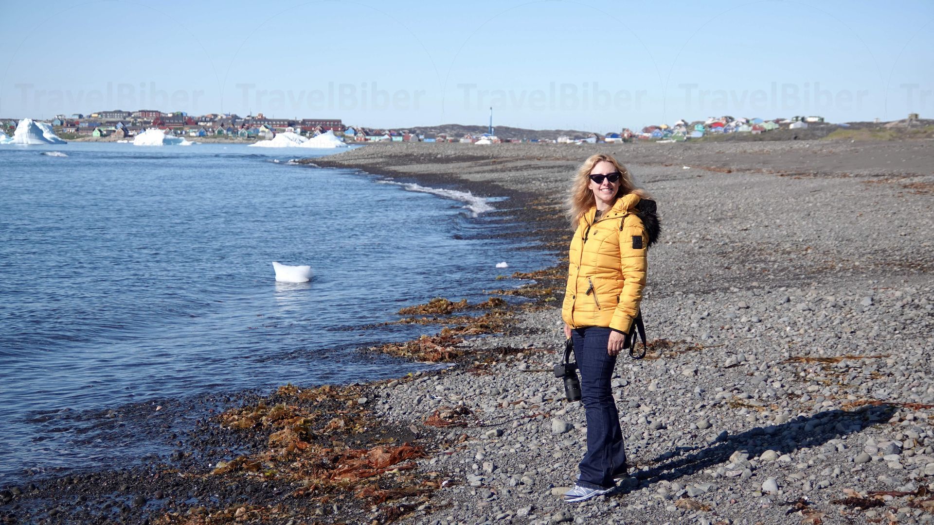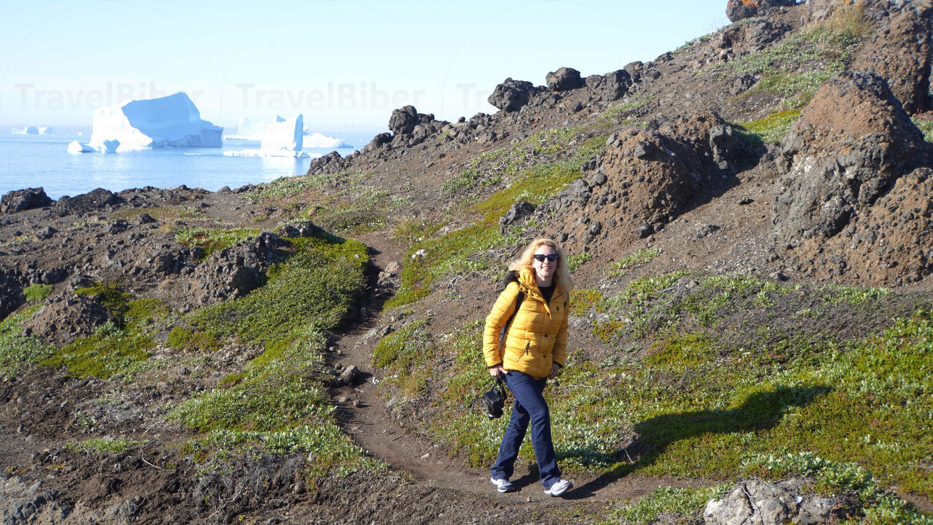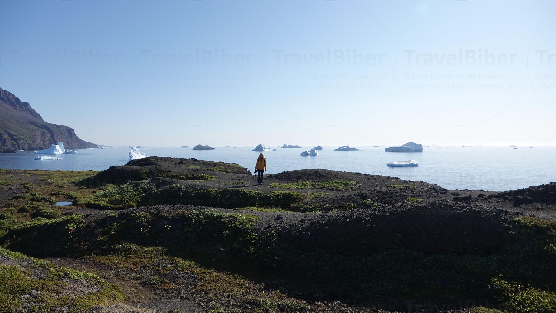 Aufbruch zu einer Wanderung entlang der Küste, hier kurz nach dem Ort Qerqertarsuaq. Die Wanderung führt entlang der Küste mit ständigen Blick auf die vielen Eisbergen im Wasser.