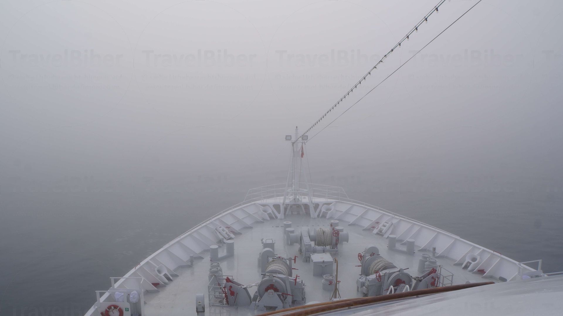 Bei diesem Wetter kann das Schiff nur sehr langsam fahren, muss nach Eisbergen Ausschau halten.
