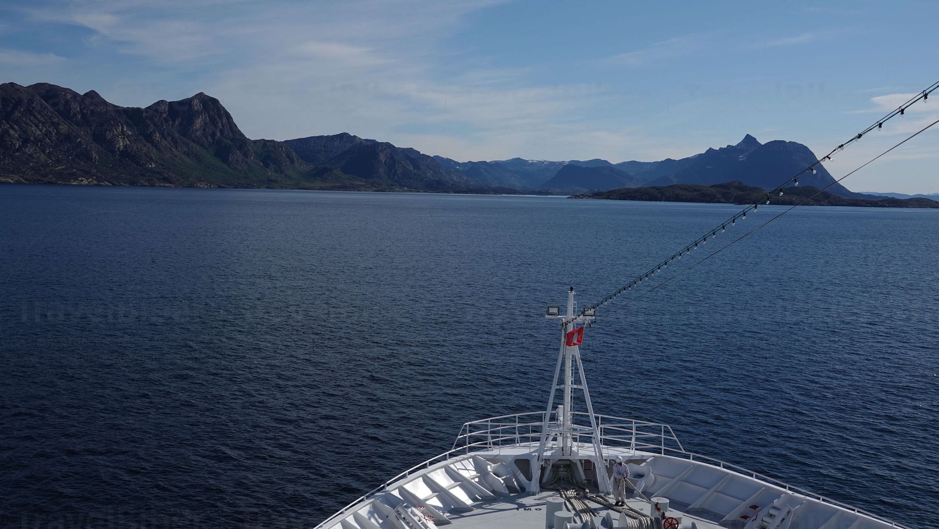 Land in Sicht! Jetzt befinden wir uns in der sog. Arctic Circle Region, d.h. nahe des Polarkreises.