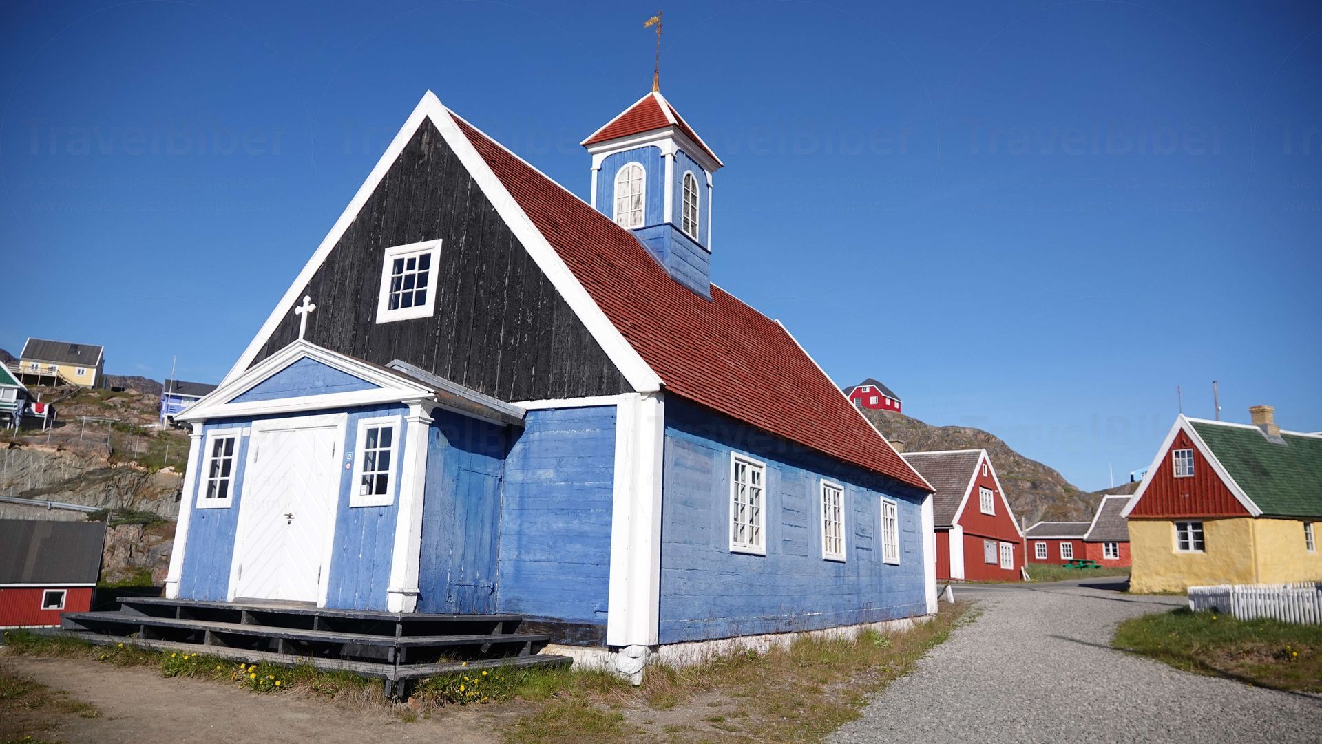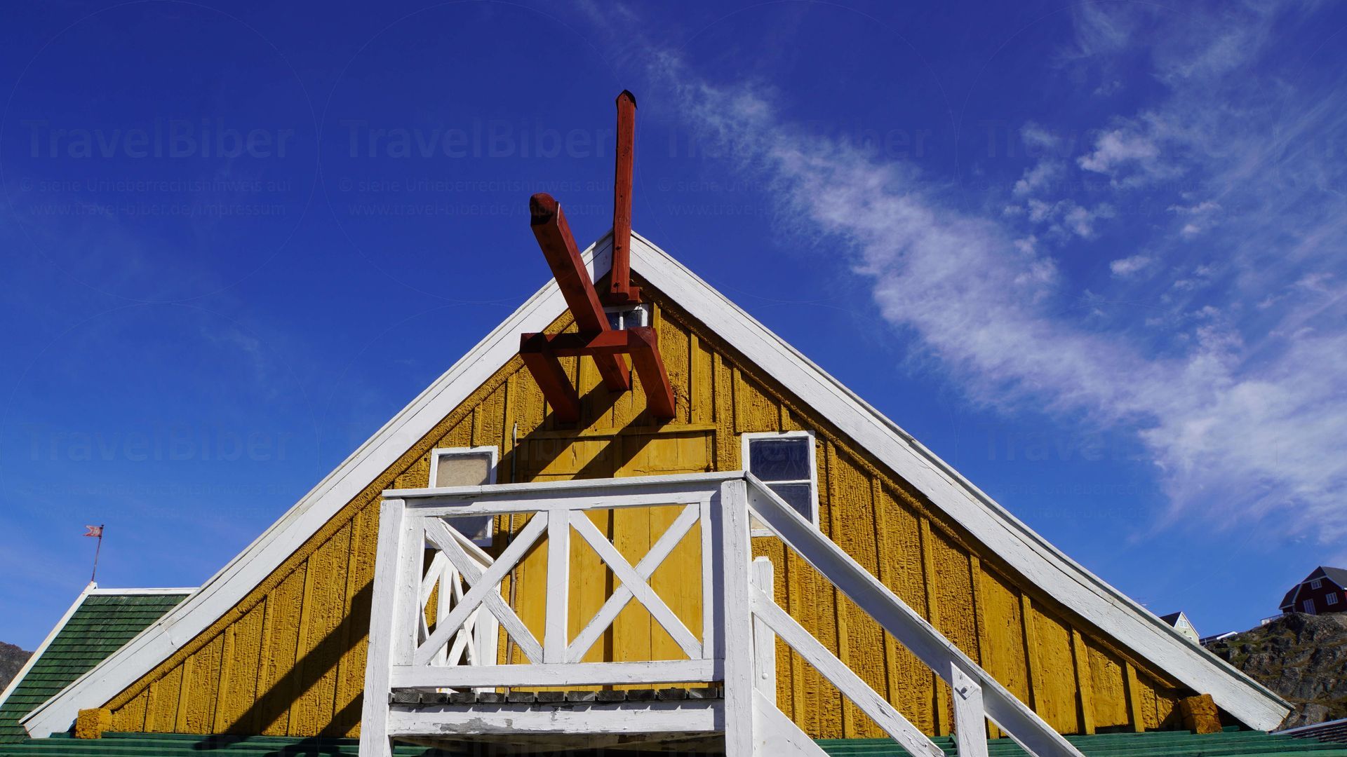 Der rote Kirche befindet sich ganz oben. Sie ist die Hauptkirche von Sisimiut.