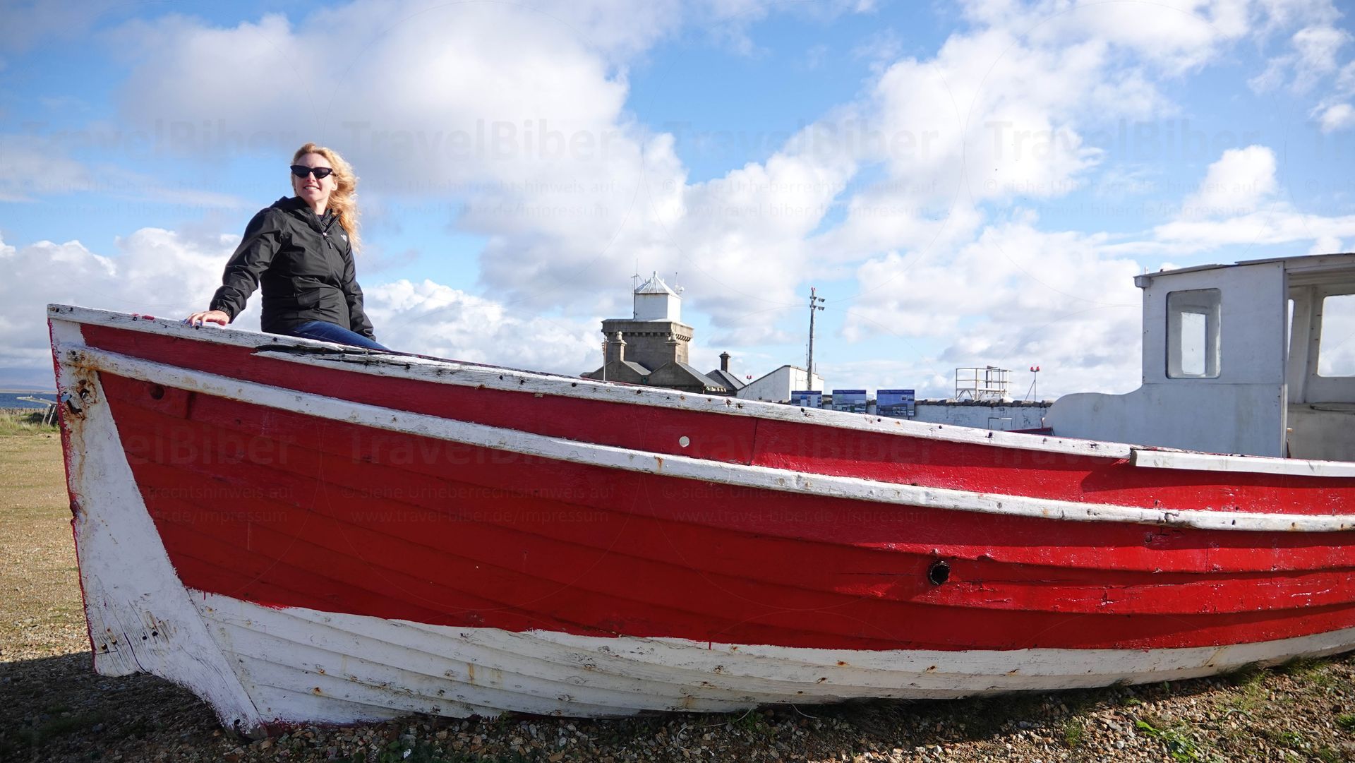 Blick vom Boot aufs Wasser. Die Sonne scheint, aber es geht ein kalter Wind.
