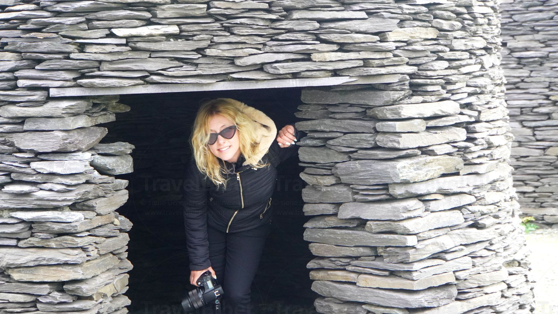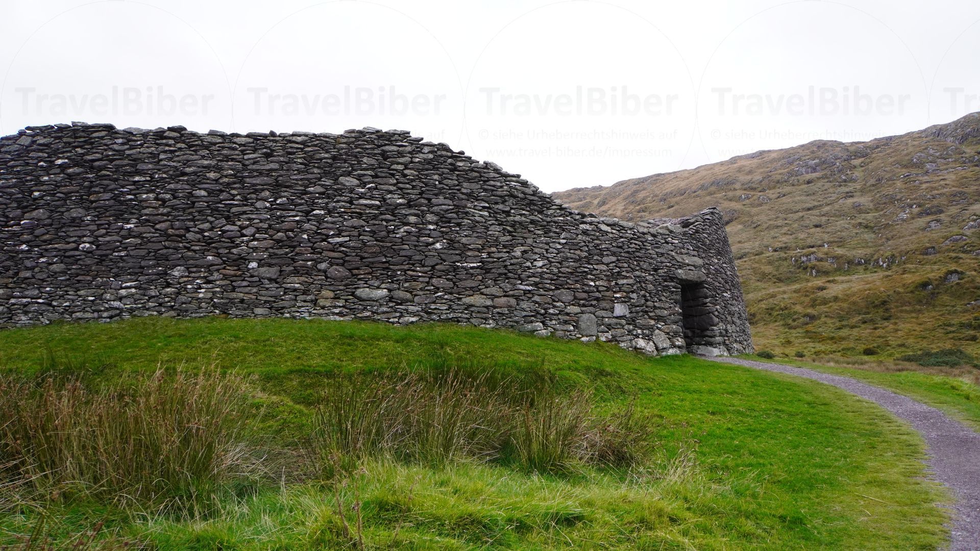 Ein altes nachgebautes Steinhaus von früher, an den Kerry Cliffs zu besichtigen.