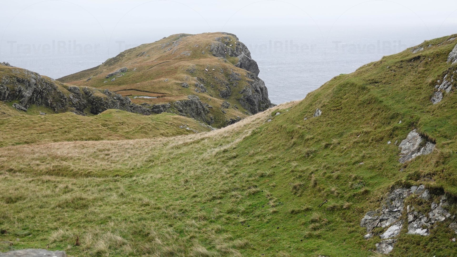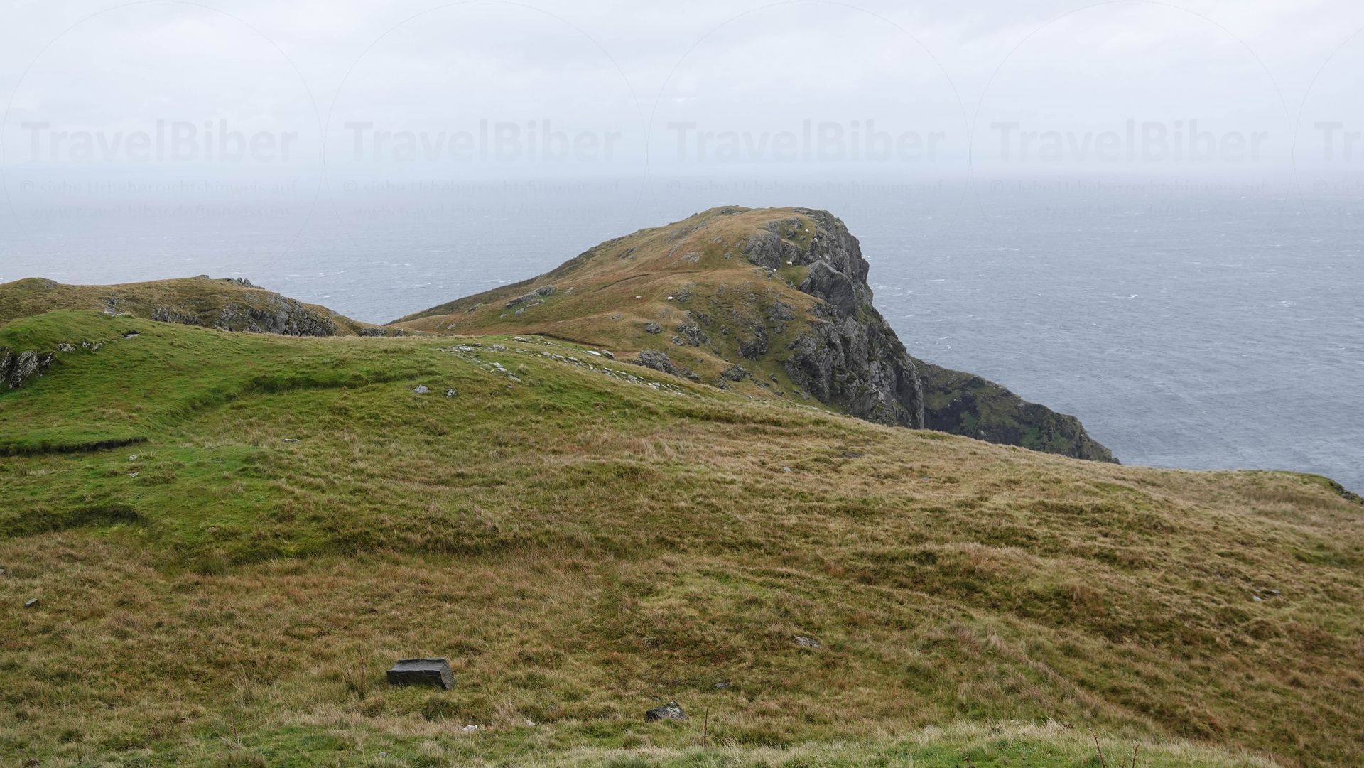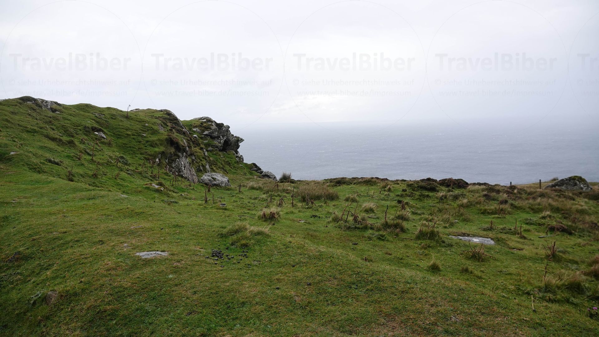 Es geht wieder zurück. Den schmalen Pfad weiter die Klippen hoch zu gehen, ist bei dem Wetter nicht möglich.
