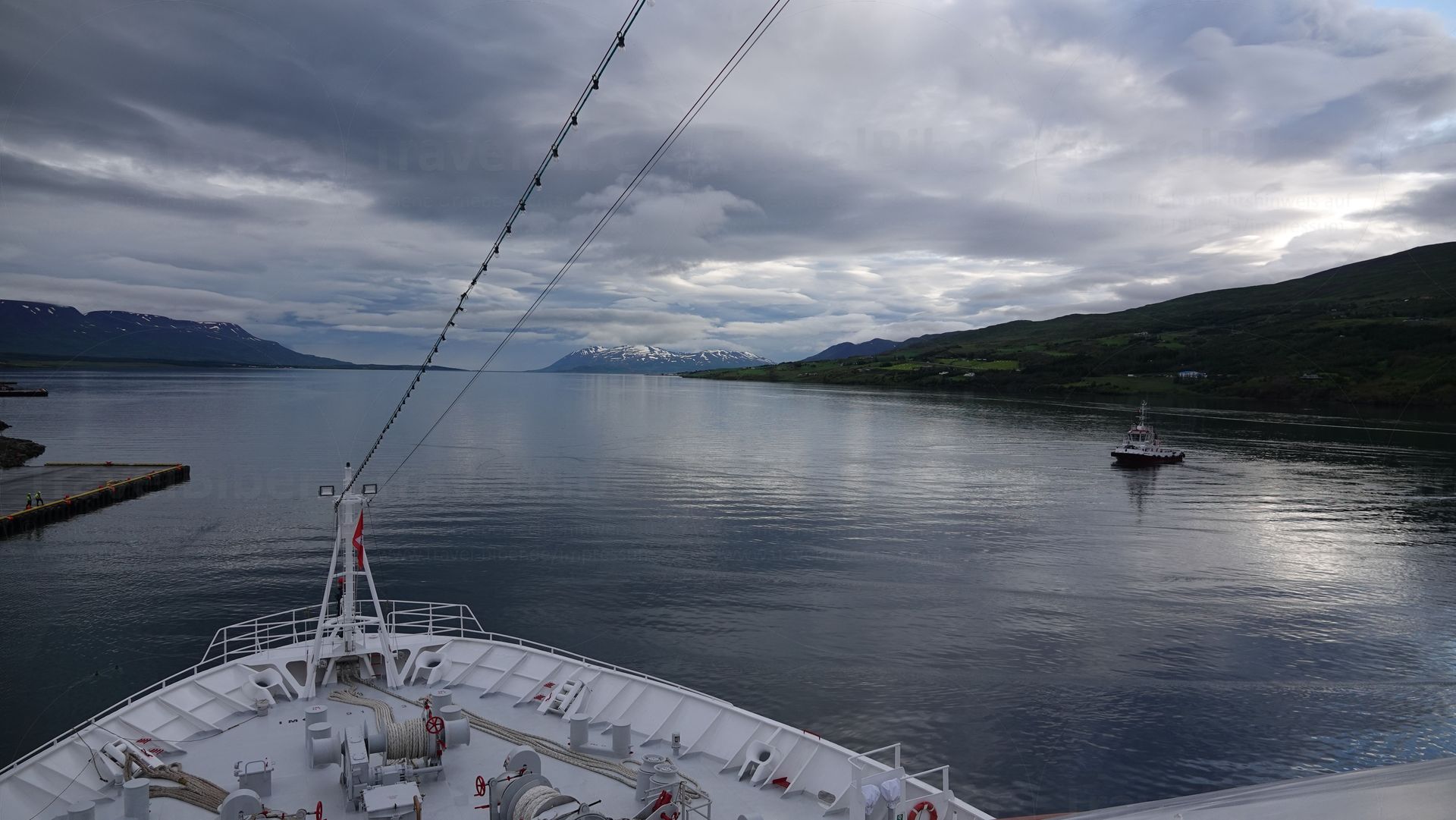 Das Schiff fährt wieder aus dem Fjord Eyjafjördur