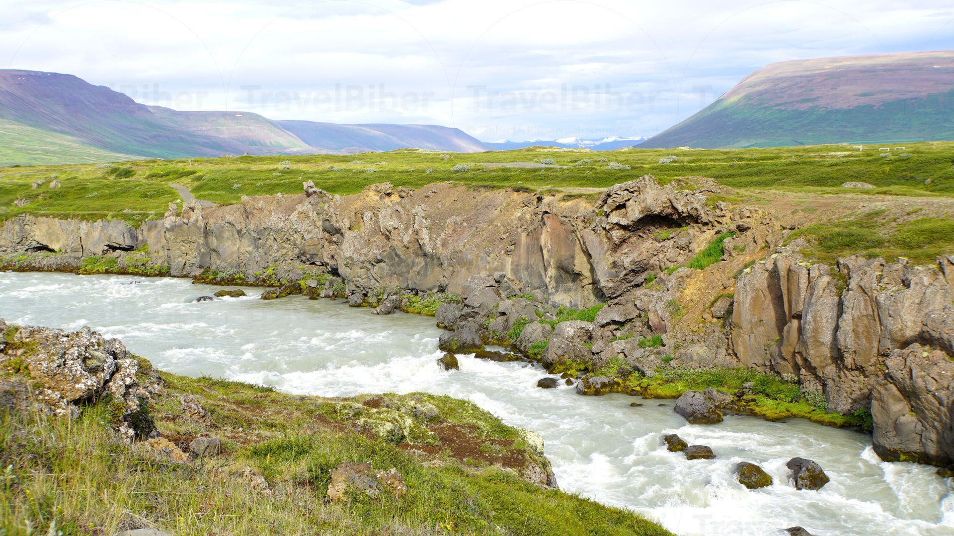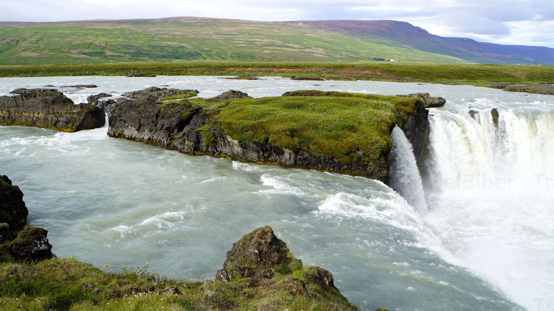 bis zum Wasserfall Godafoss (Goðafoss), der in einer herrlich grünen Umgebung liegt.
