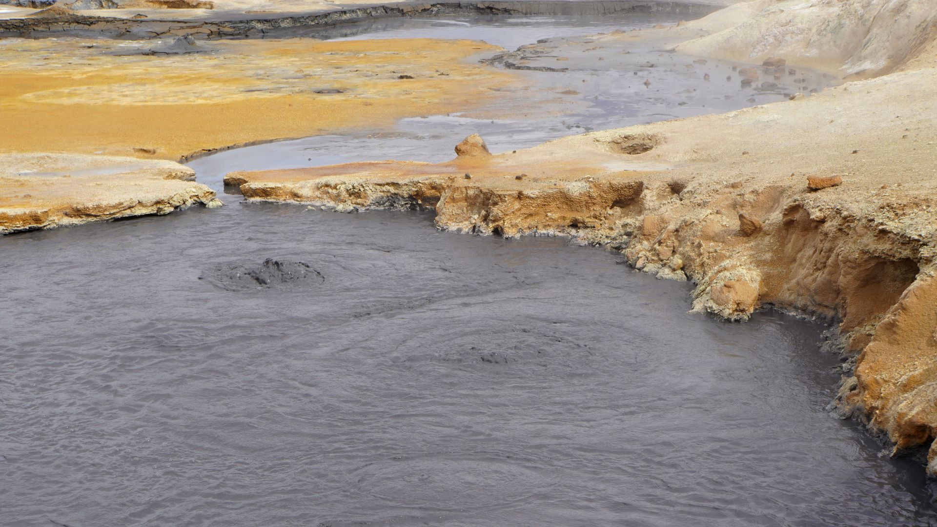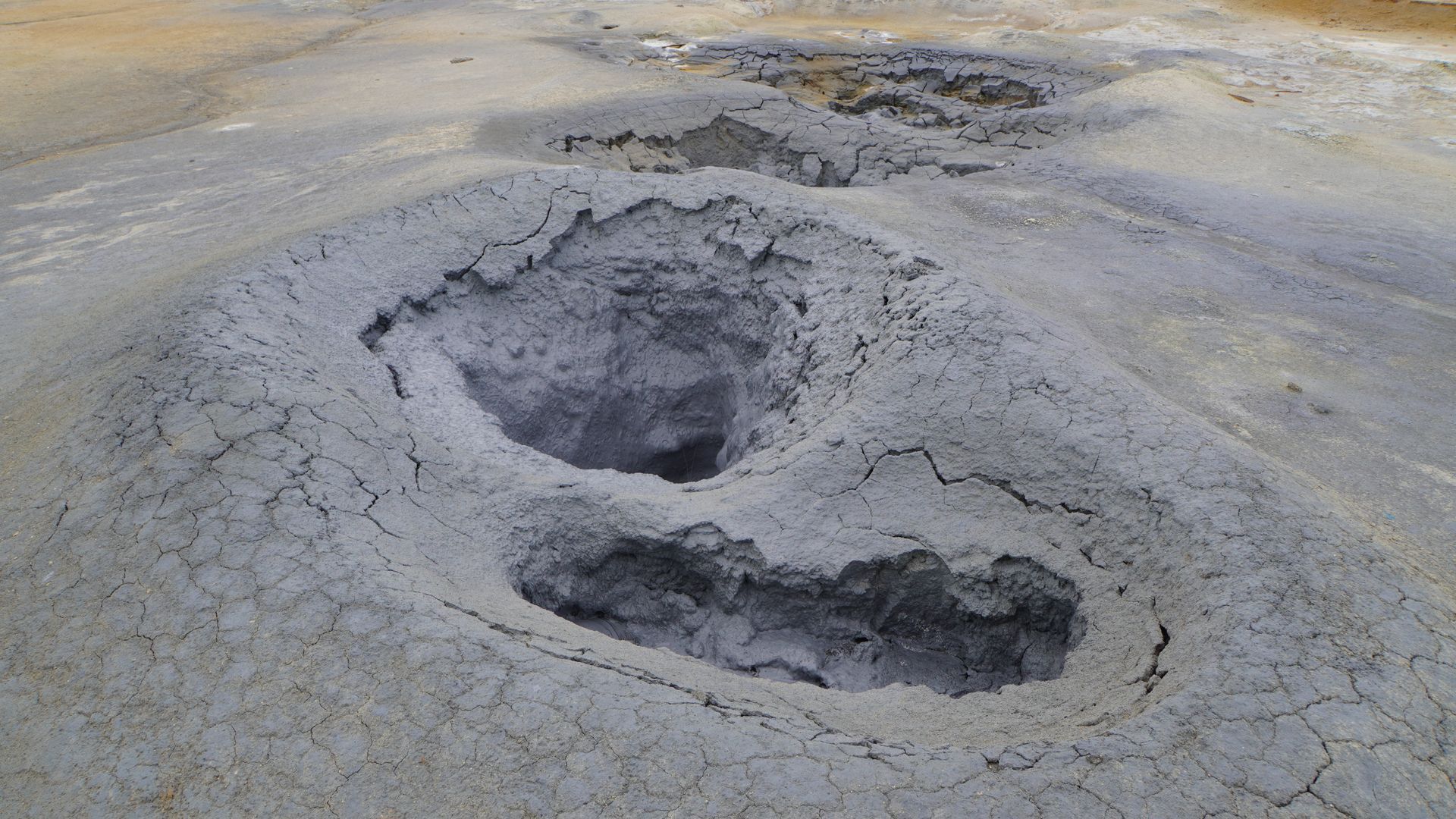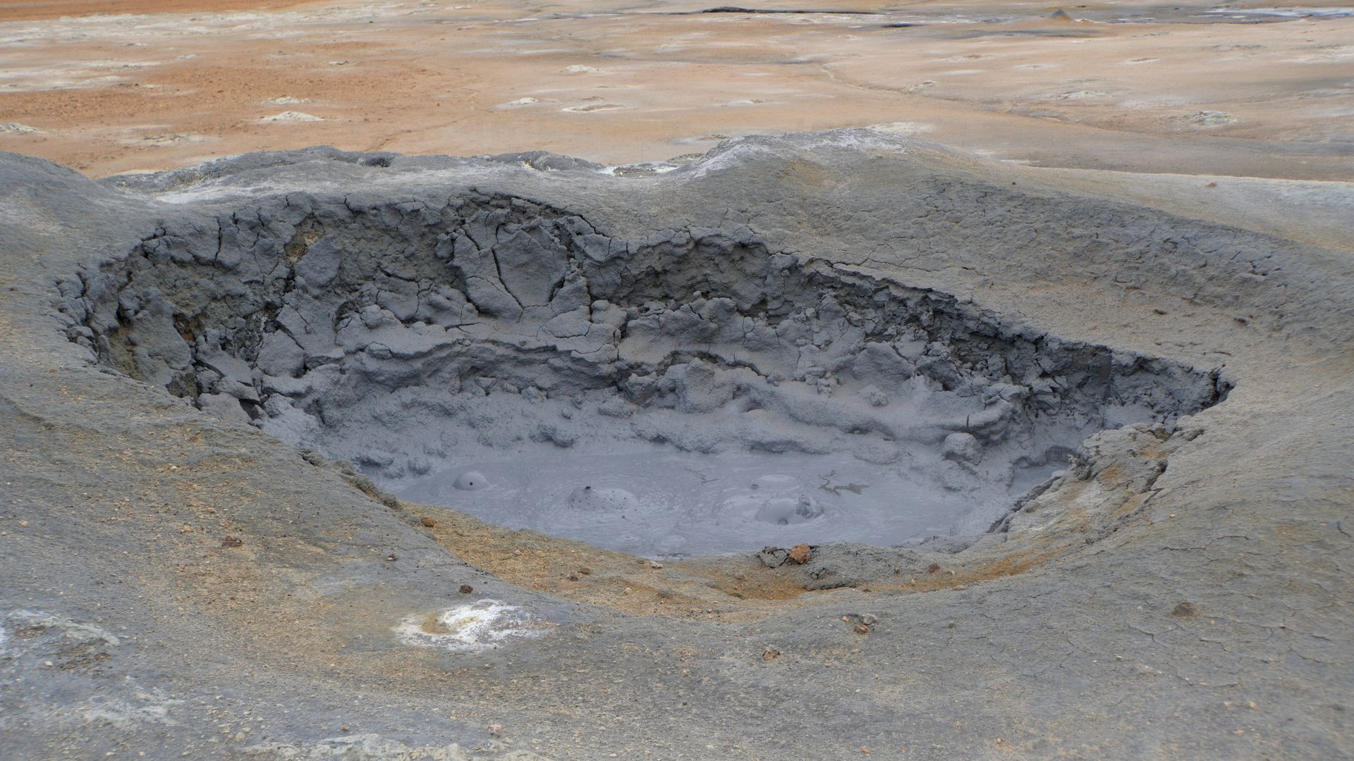 Überall hat es heiße Schlammtöpfe im Geothermalgebiet Hverir.