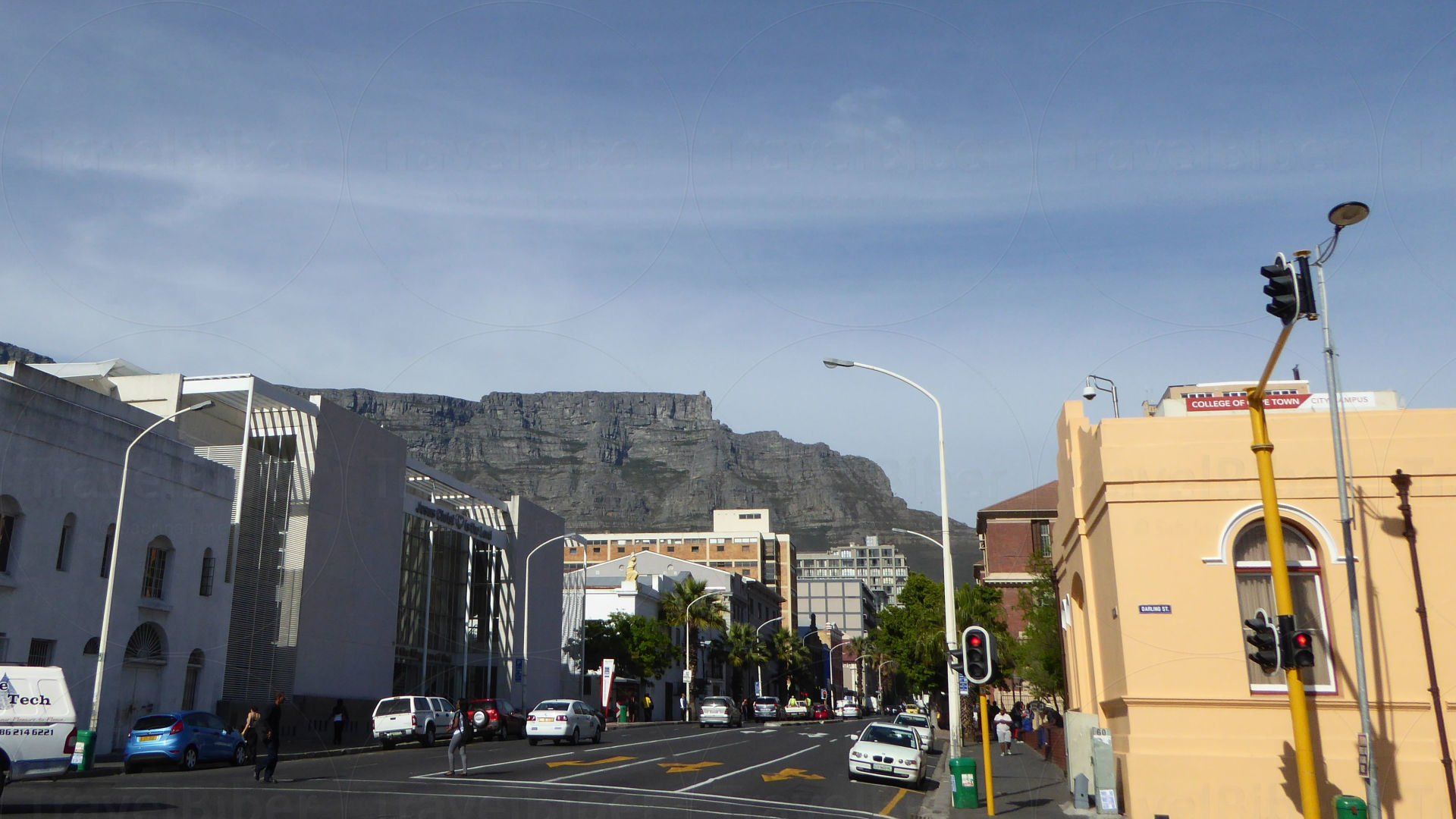 ist wirklich sehr schön; im Hintergrund sieht man die Felsen des berühmten Tafelbergs.