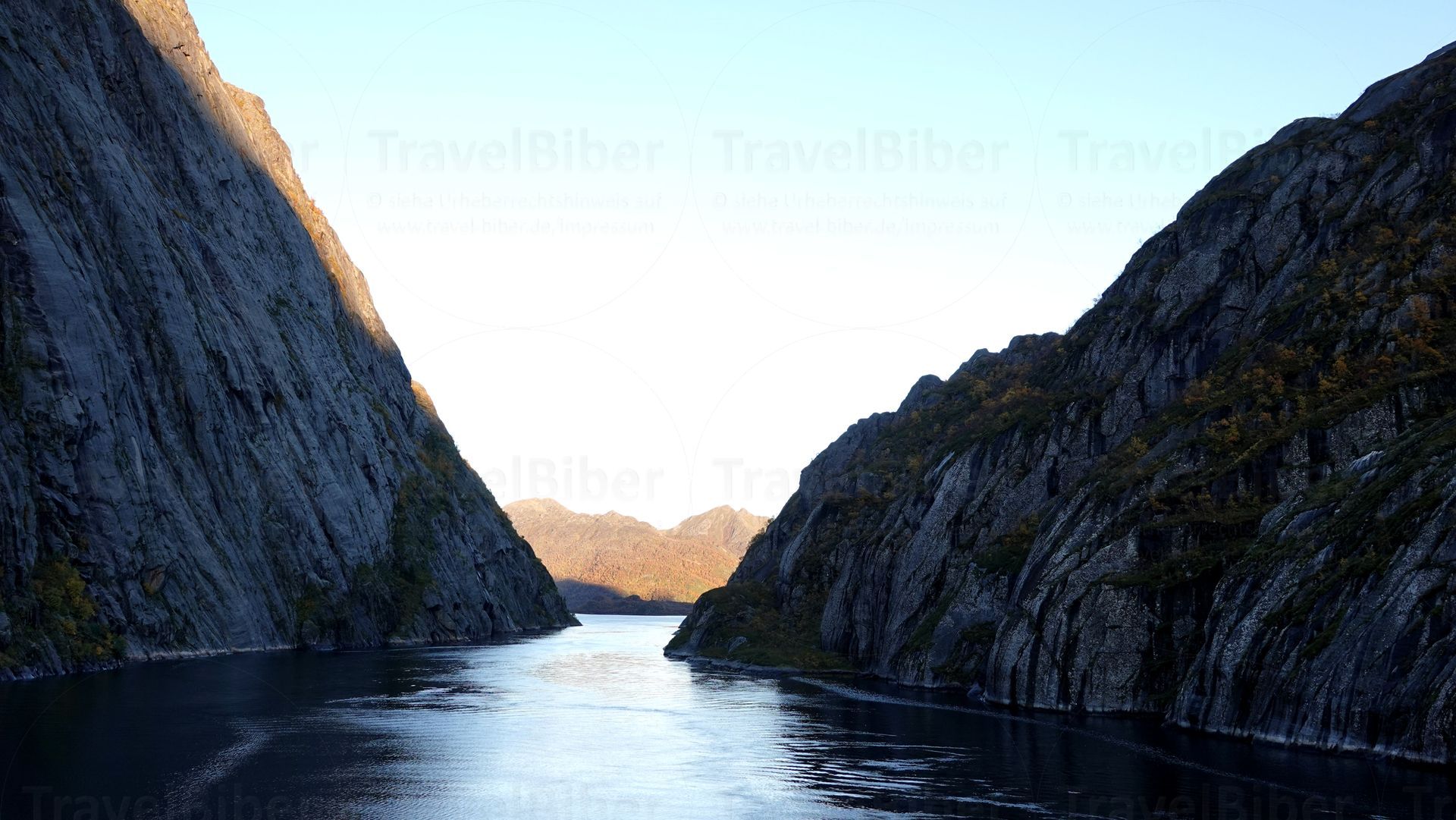 geht es weiter zu den Lofoten. Dafür geht es zunächst durch den so genannten Raftsund und in den engen Trollfjord hinein, ein einmaliges Erlebnis.