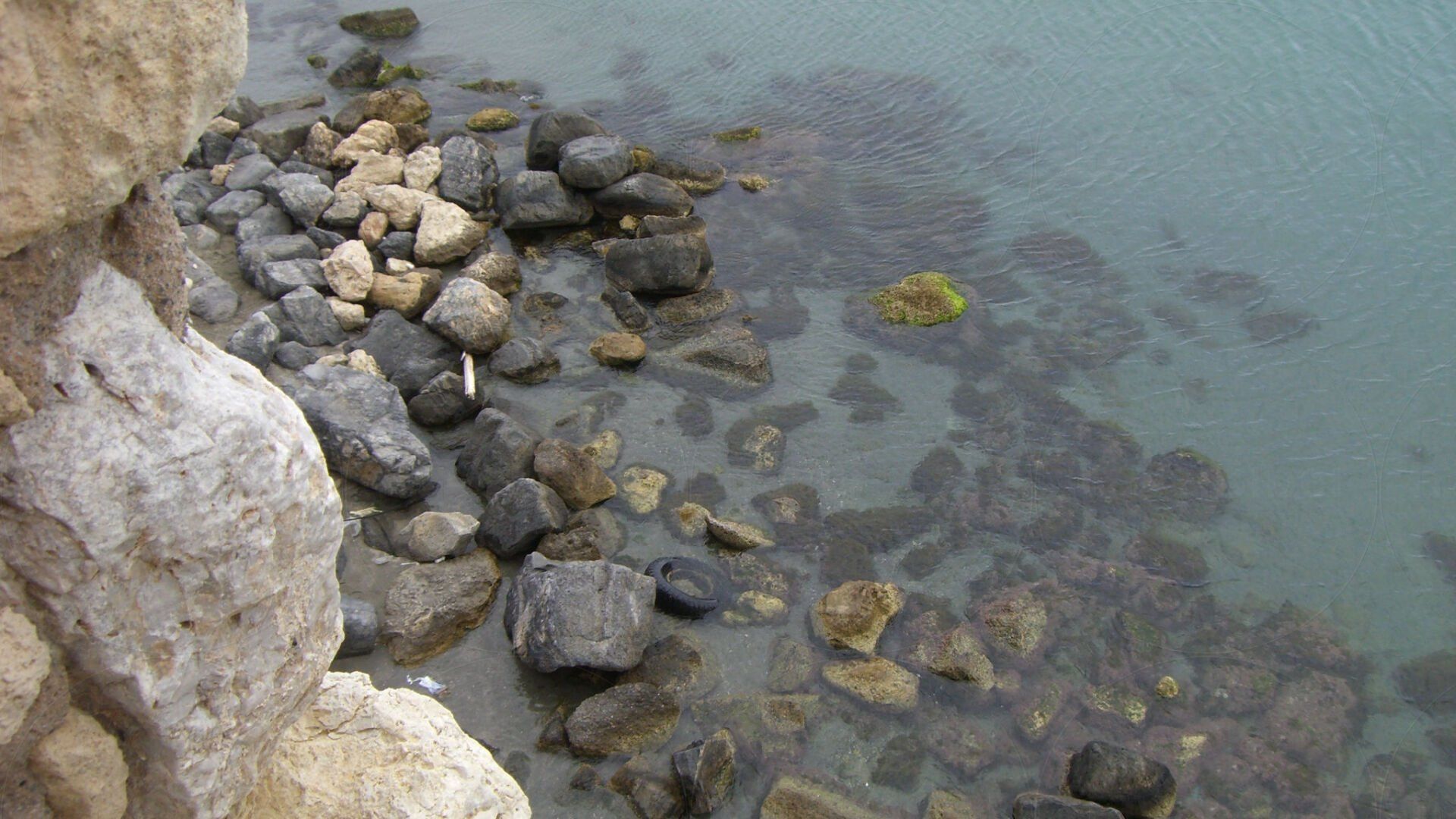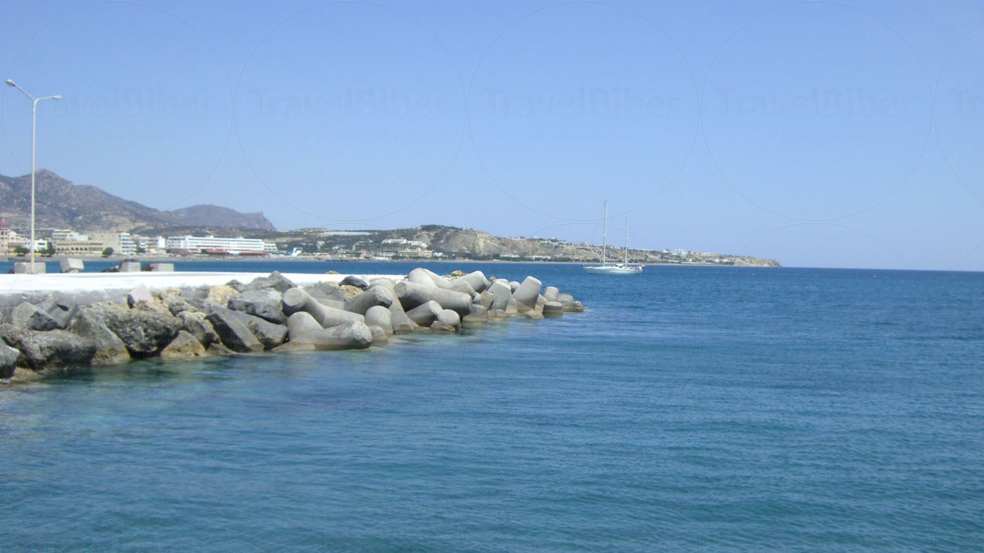Felsen am Meer bei Heronissos, einem typischen Feriengebiet auf Kreta.