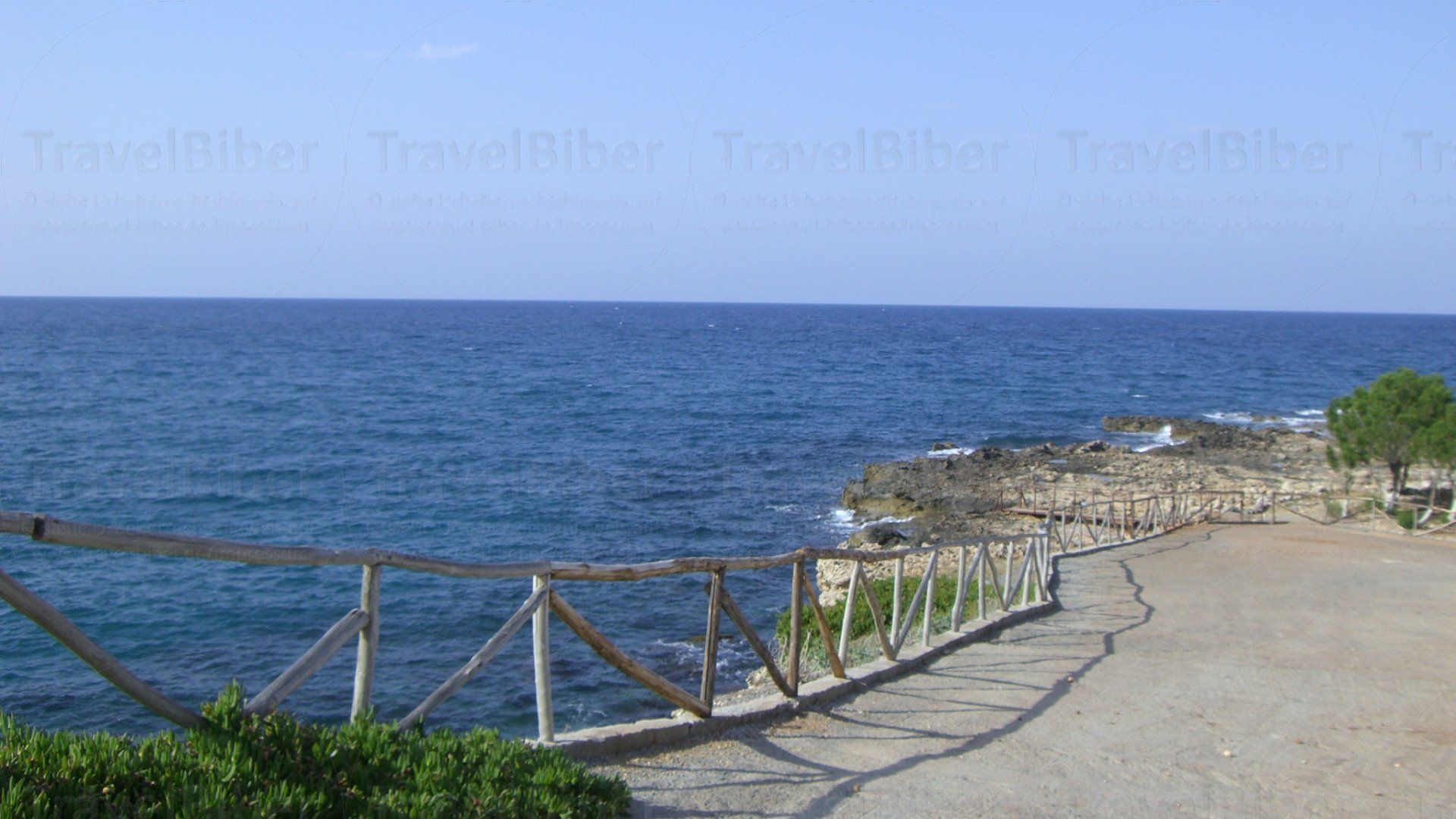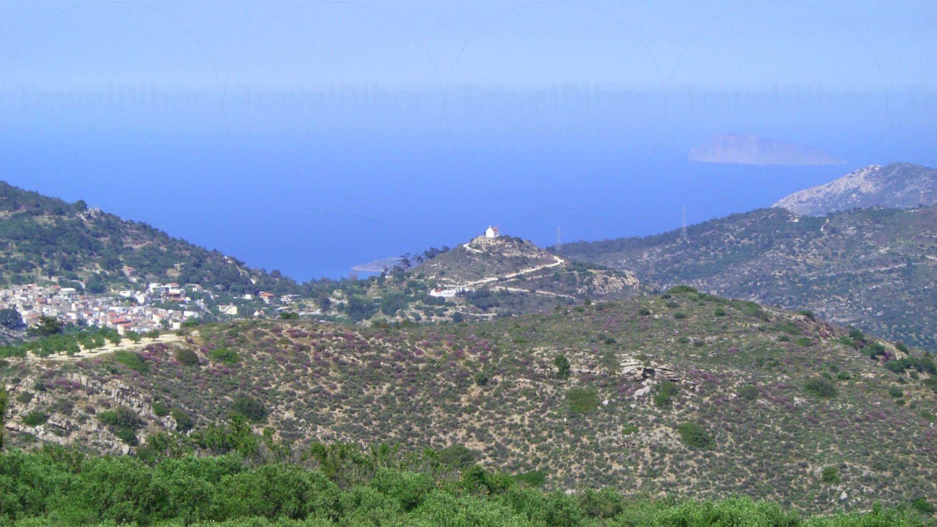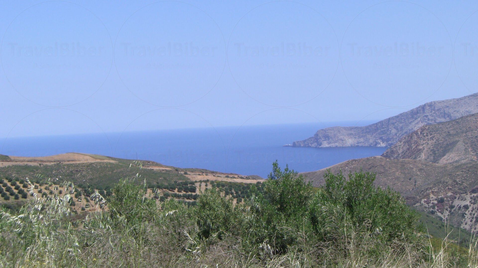 Der Nachbarstrand und -bucht vom Hügel aus gesehen.