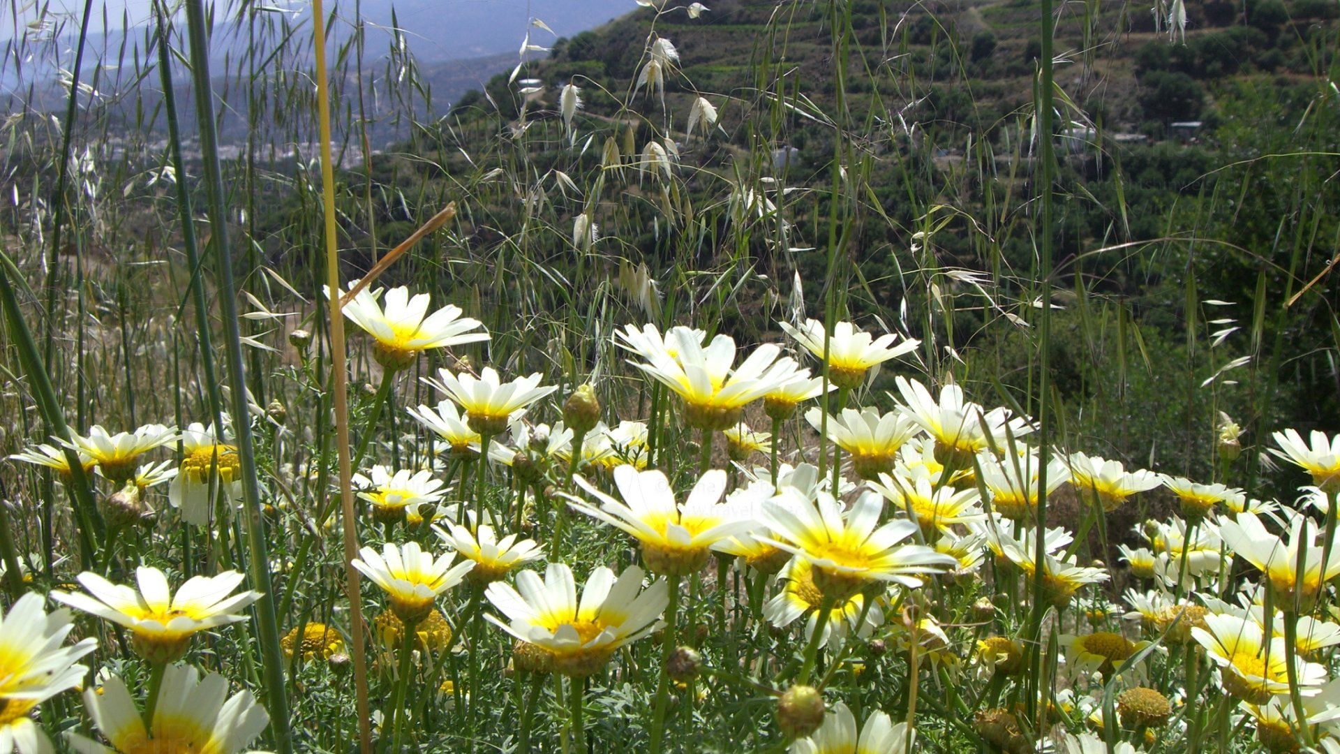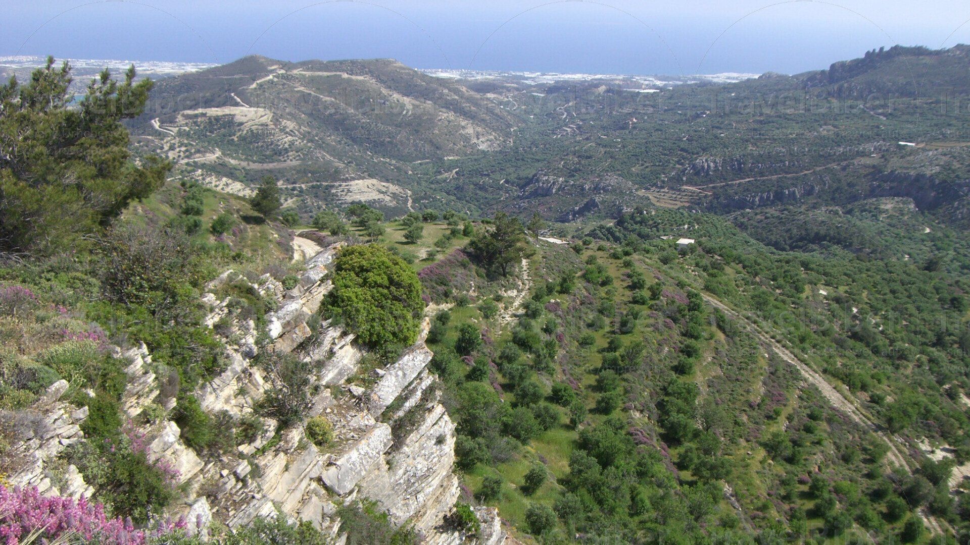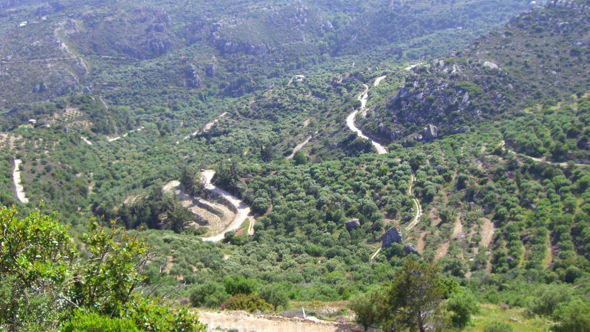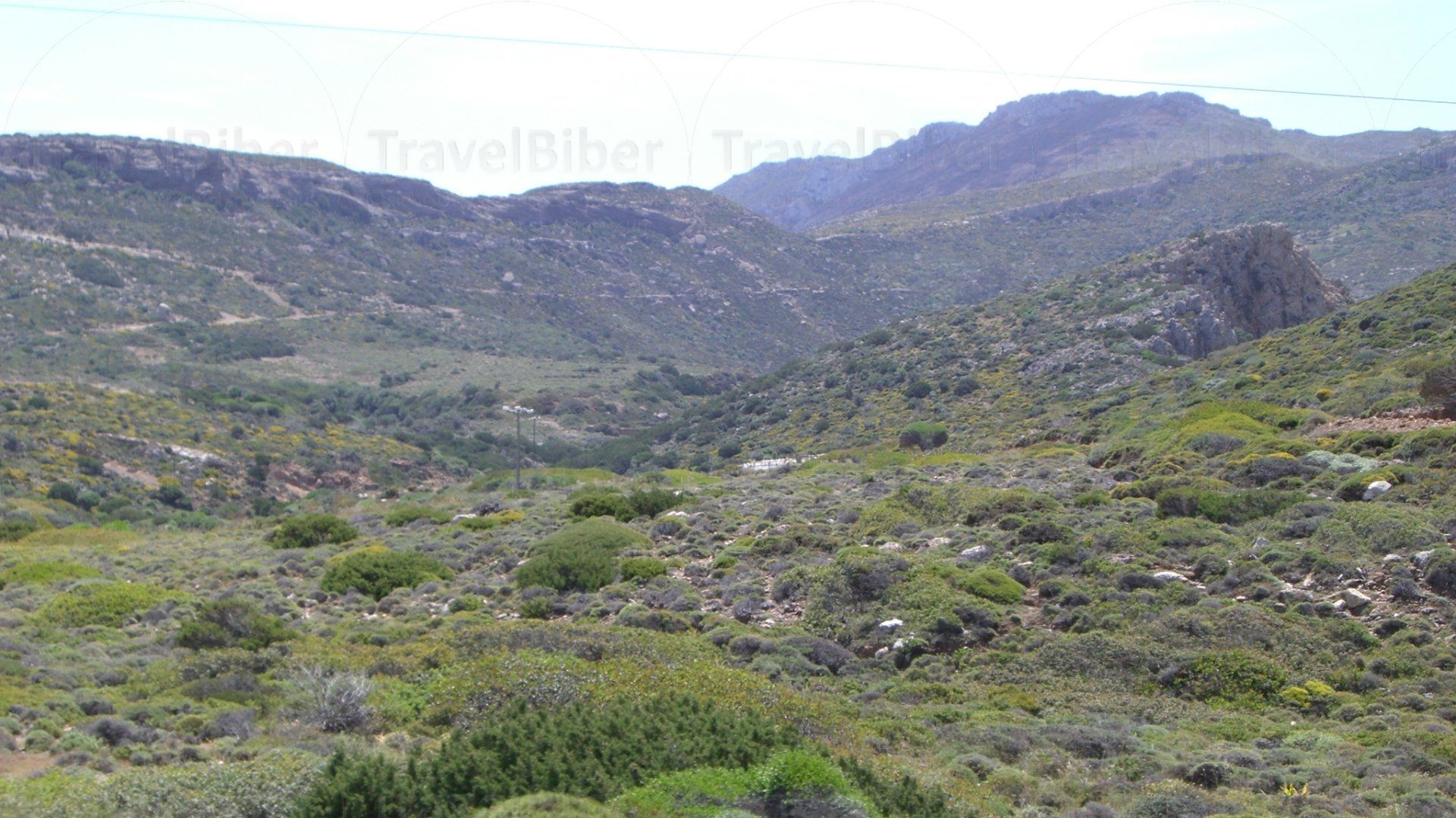 Blick über das gebirgige Kreta; jetzt im Frühjahr ist es schön grün.