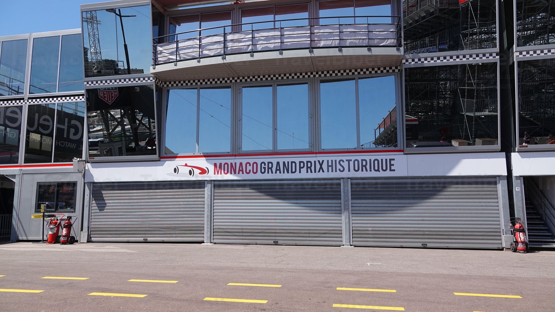 Auf dem Weg zum Hafenbecken runter geht es vorbei an der Rennstrecke. Es ist kurz vor dem Monaco Grandprix Historique. Es wird gerade überall aufgebaut.