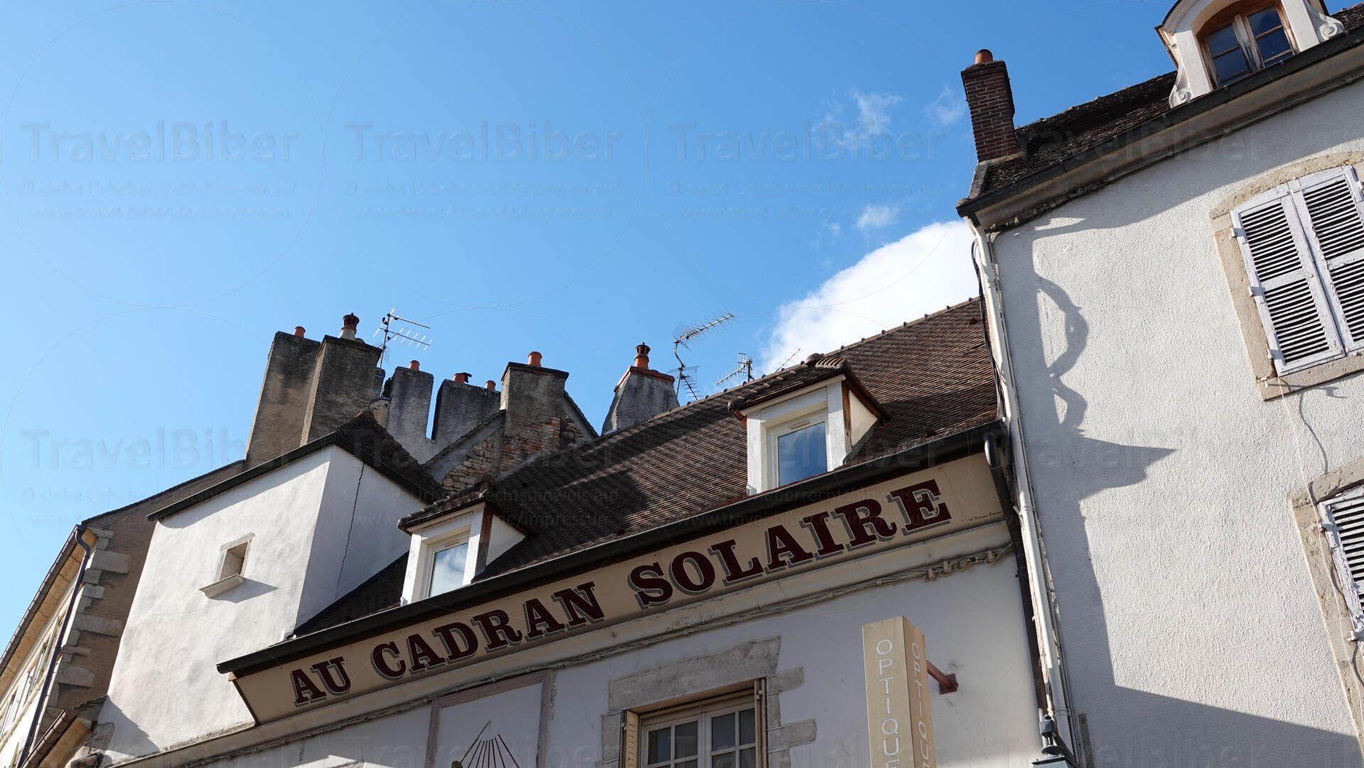 mit seinen bunten Dachziegeln, beliebtes Fotomotiv in der Burgund.
