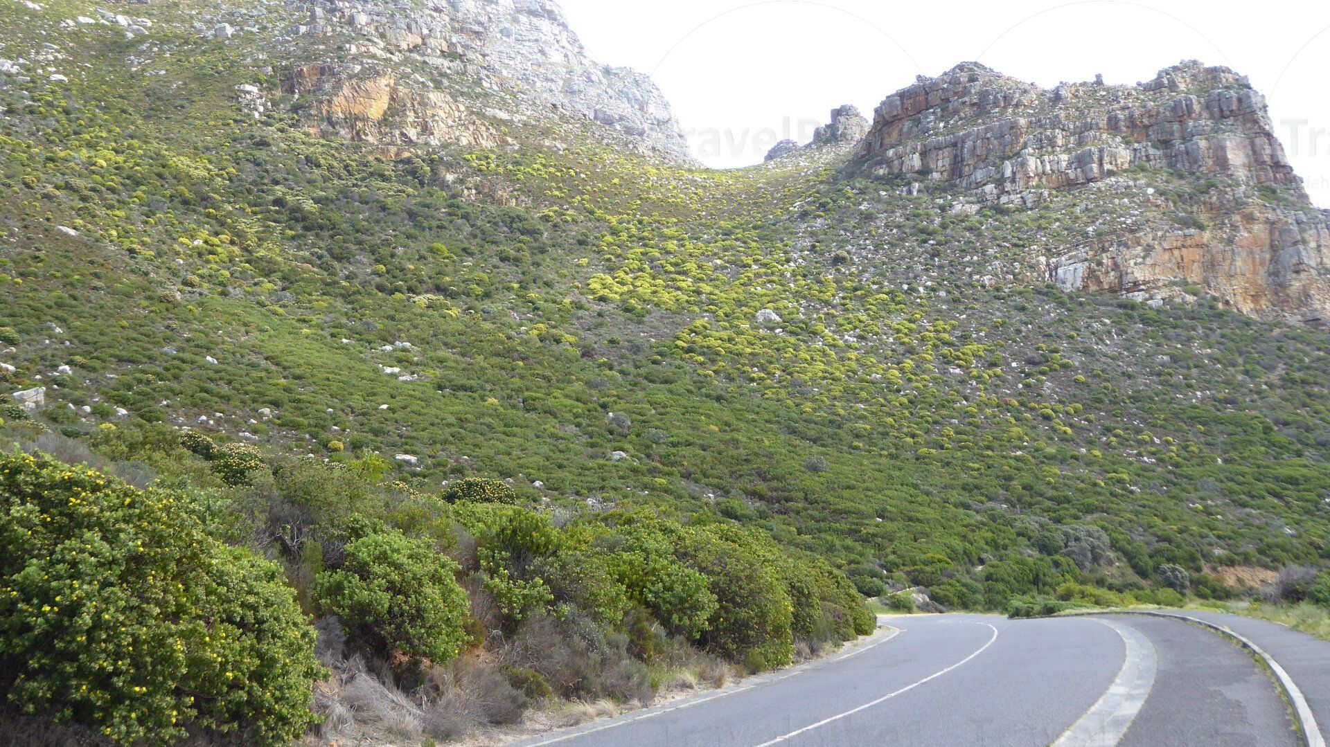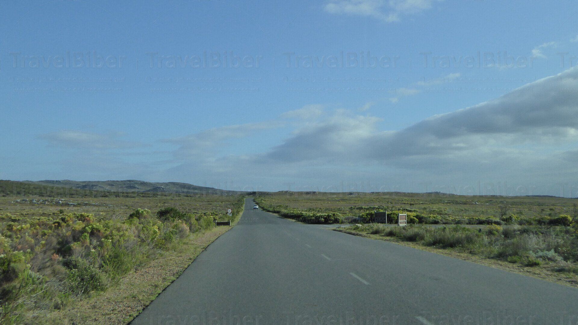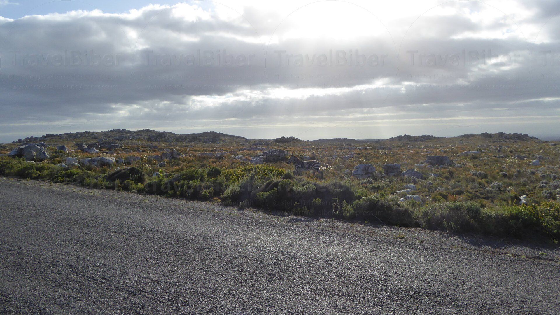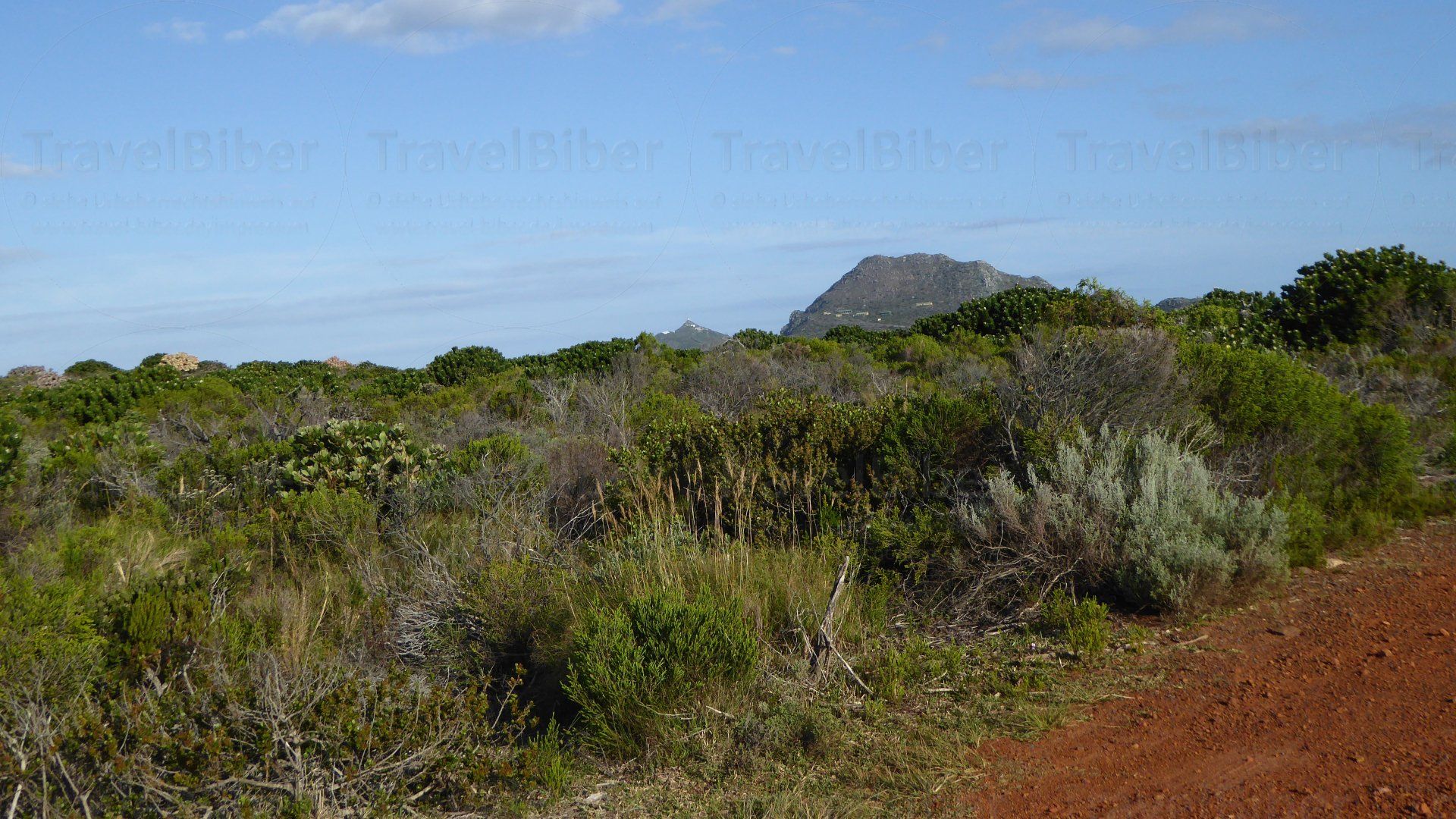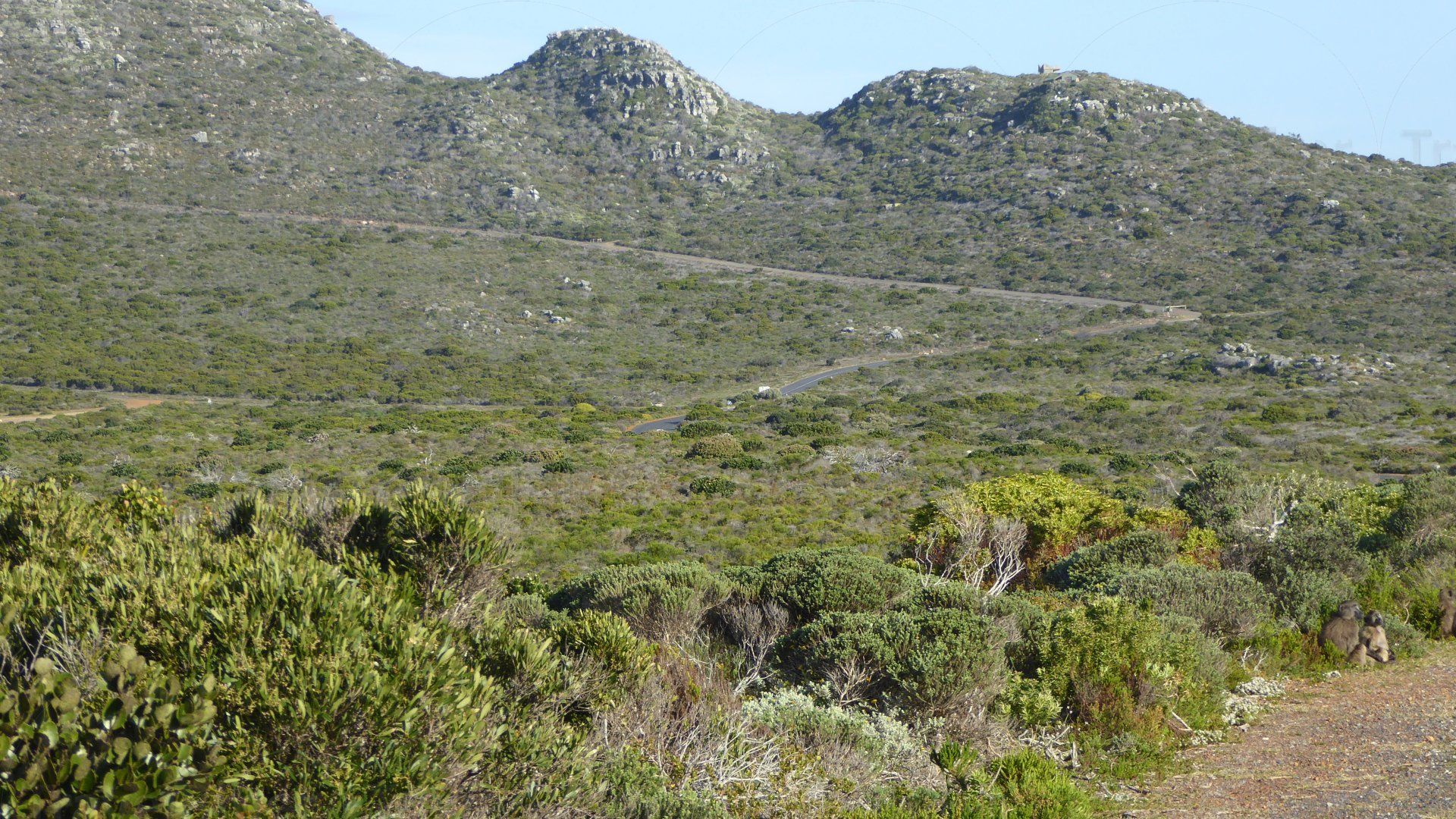 Rechts und links nur noch niedrige Büsche, insbesondere viele Fynbos.