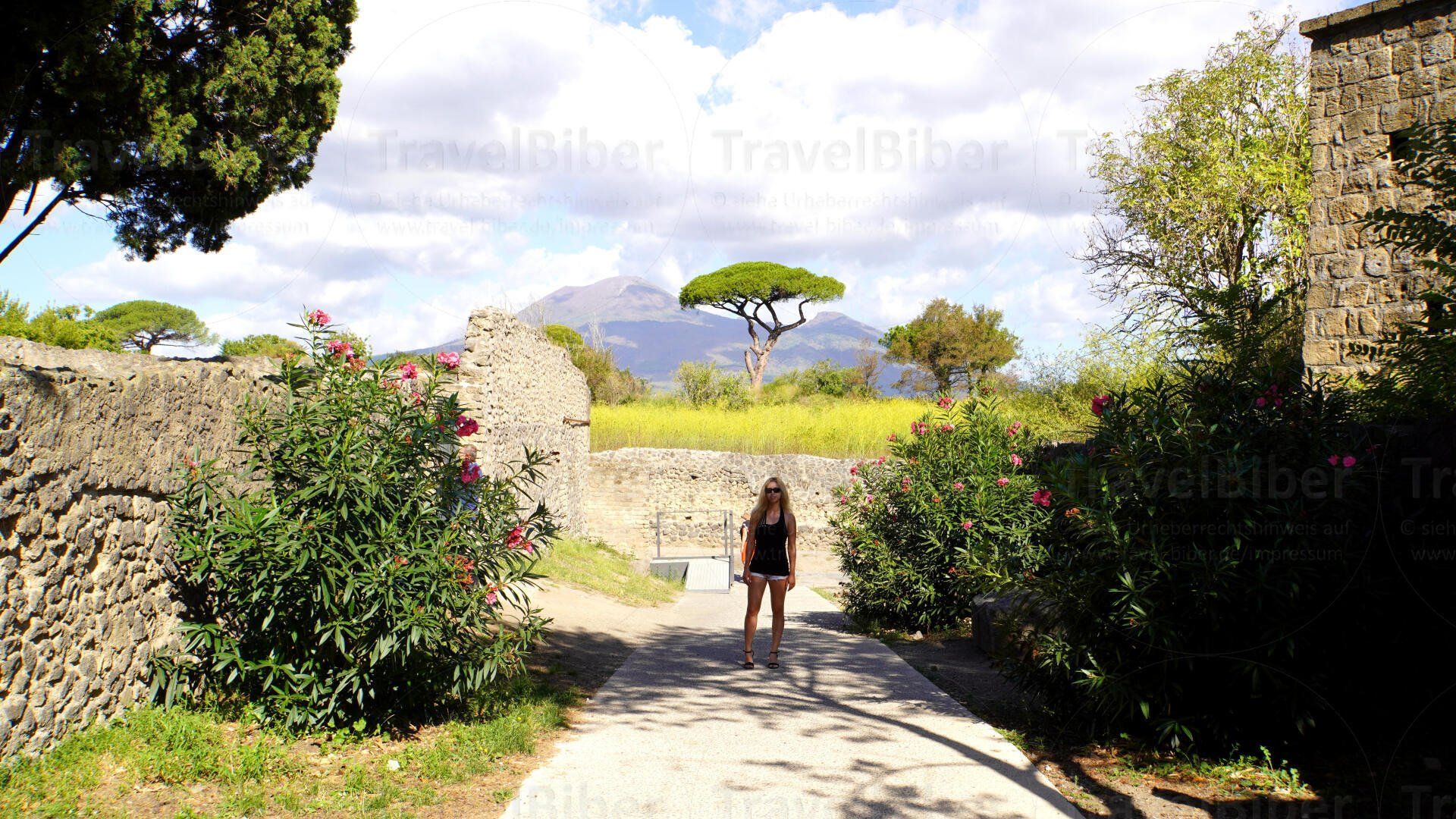Im Hintergrund ist der Vesuv