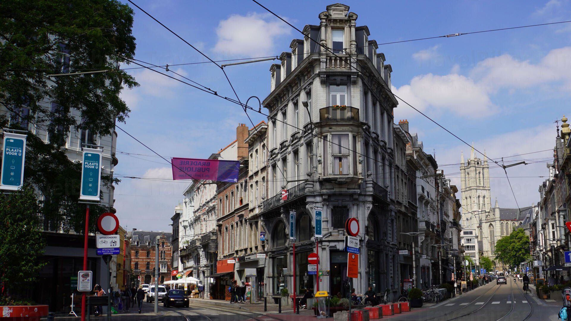 Es geht durch die Innenstadt von Gent, in Richtung der St.-Bavo-Kathedrale.