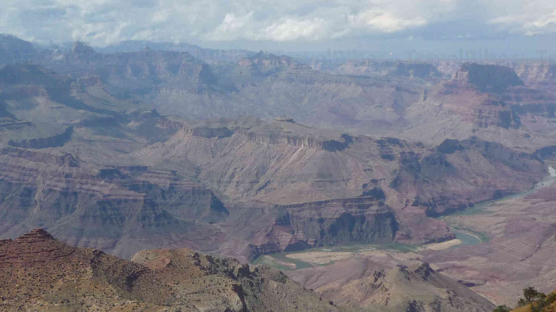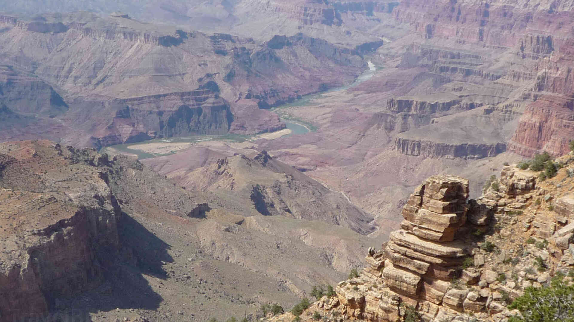 Der riesige Grand Canyon, eine ungefähr vierhundertfünfzig Kilometer lange Schlucht gigantischen Ausmaßes. Der Grand Canyon, ebenfalls ein Nationalpark in den USA, liegt im US-Bundesstaat Arizona.