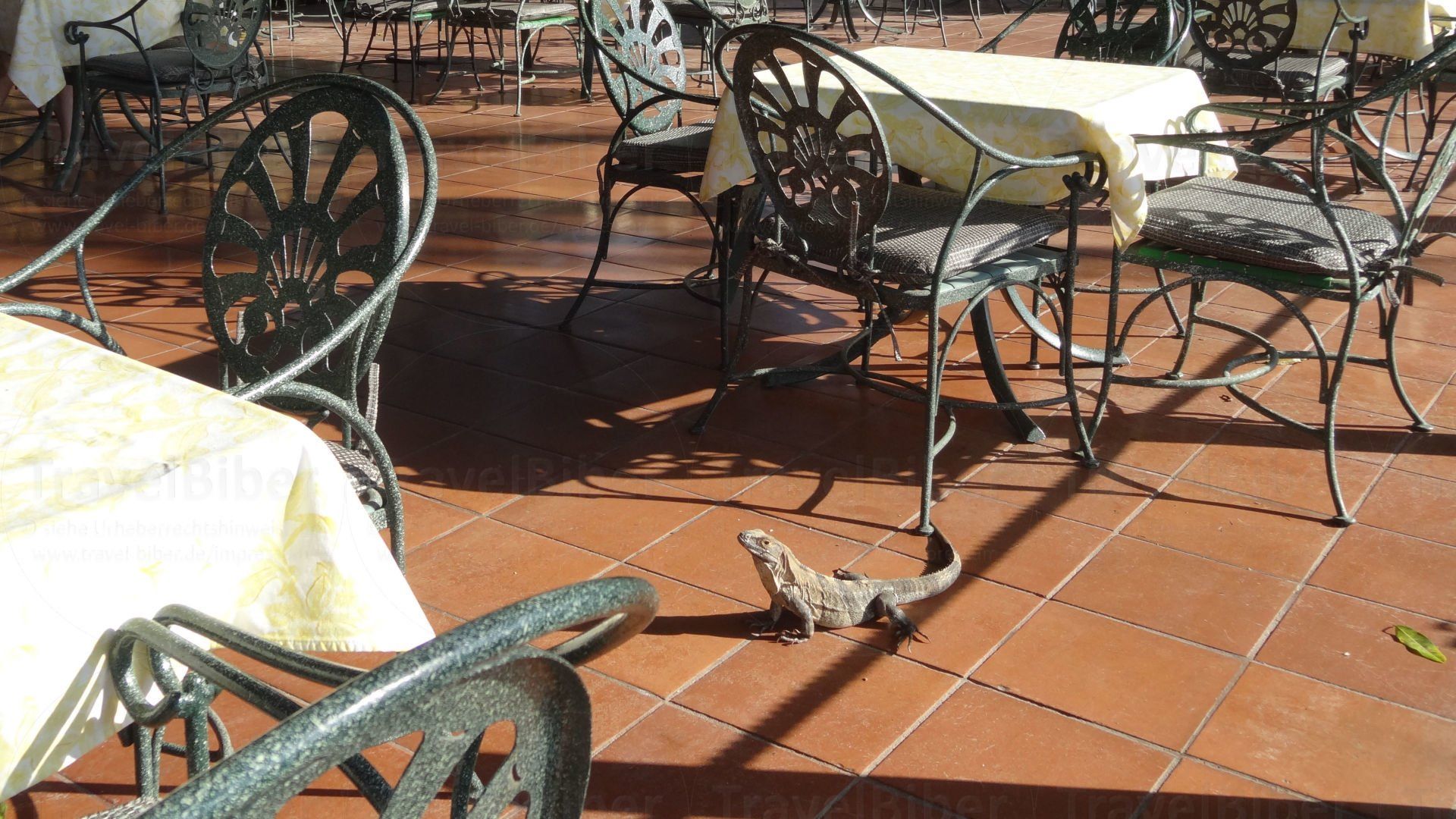 Leguane tummeln sich zwischen den Tischen