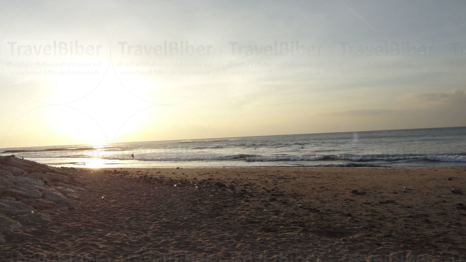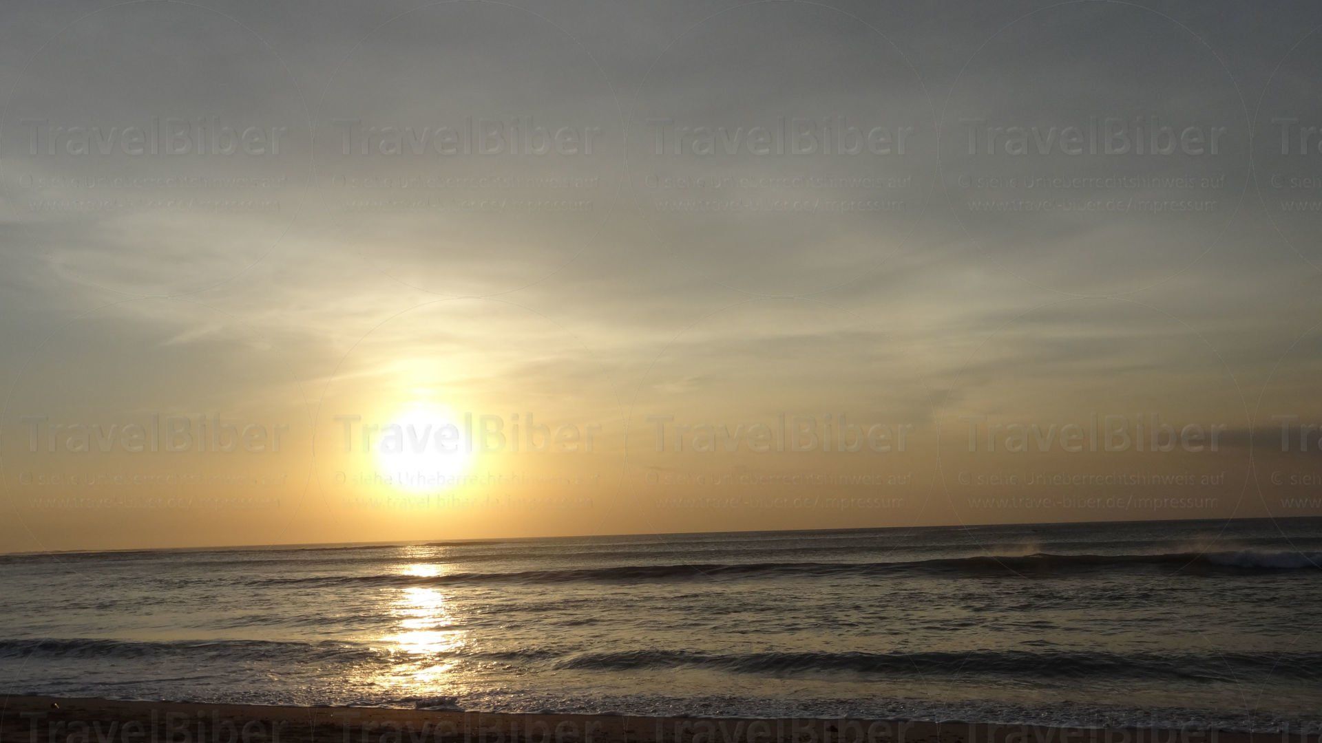 Den allabendlichen Sonnenuntergang gegen halb sieben beobachtet man am Strand sitzend, mit Getränk in der Hand, bevor es dann in die Stadt geht.