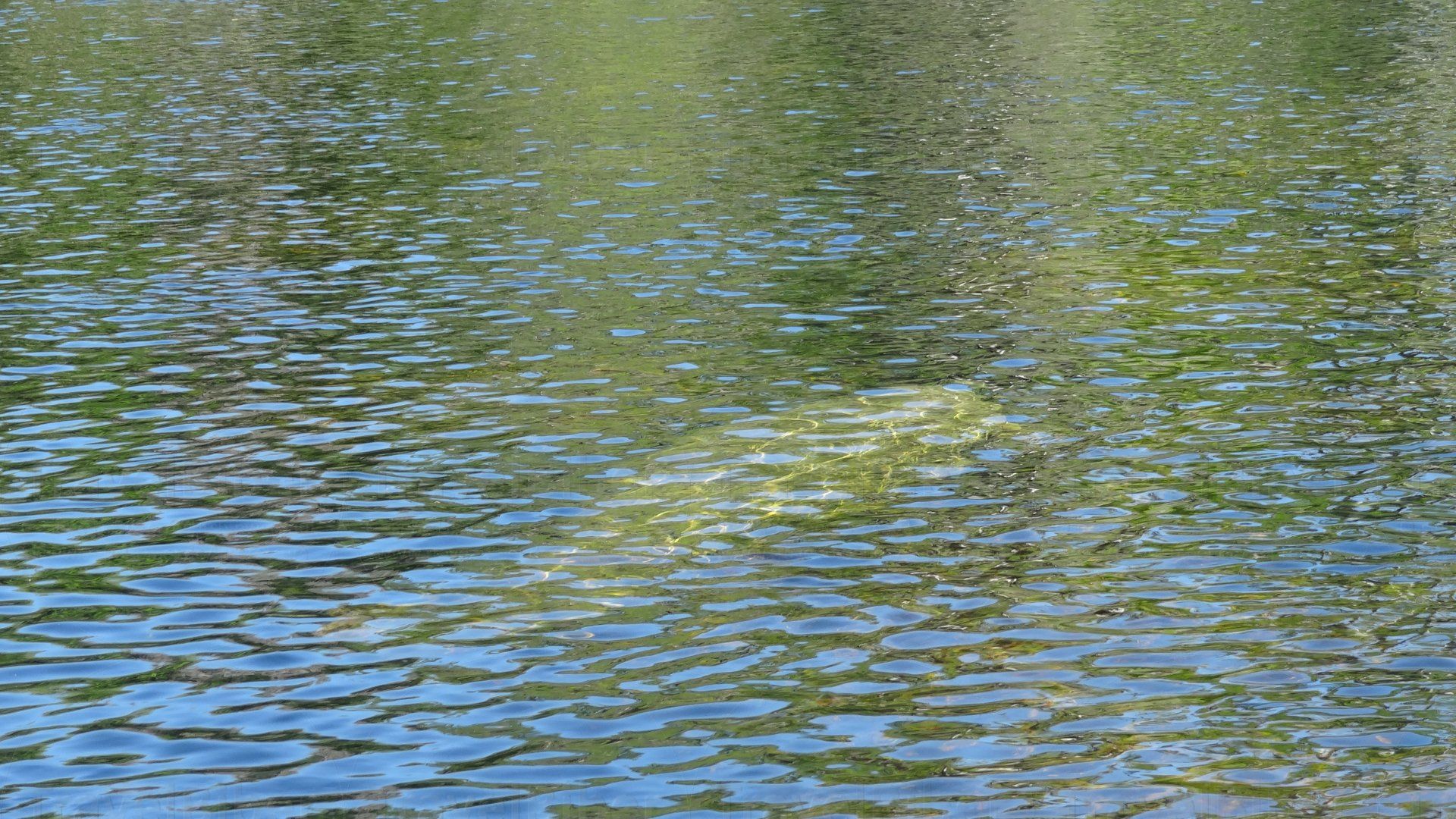 Kurz taucht die Seekuh auf, um Luft zu schnappen.