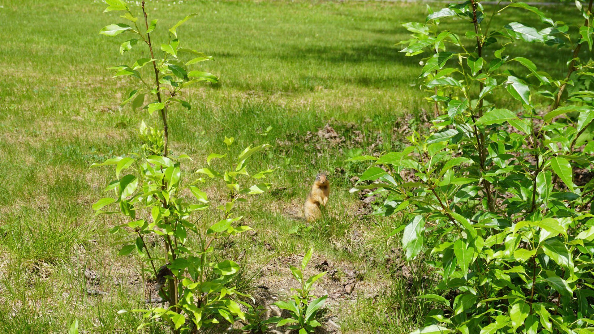 Süße Entdeckung auf der Wiese vor dem Hamlock Grove Boardwalk.