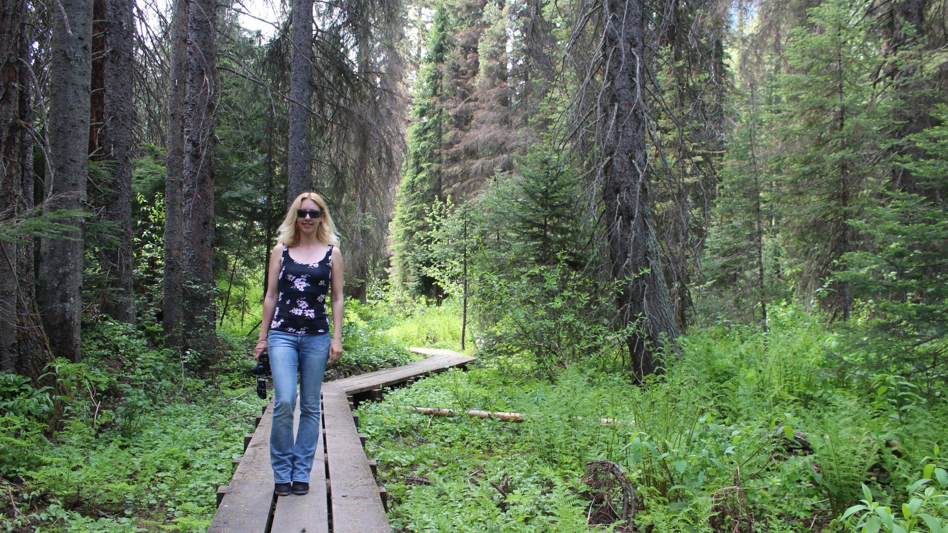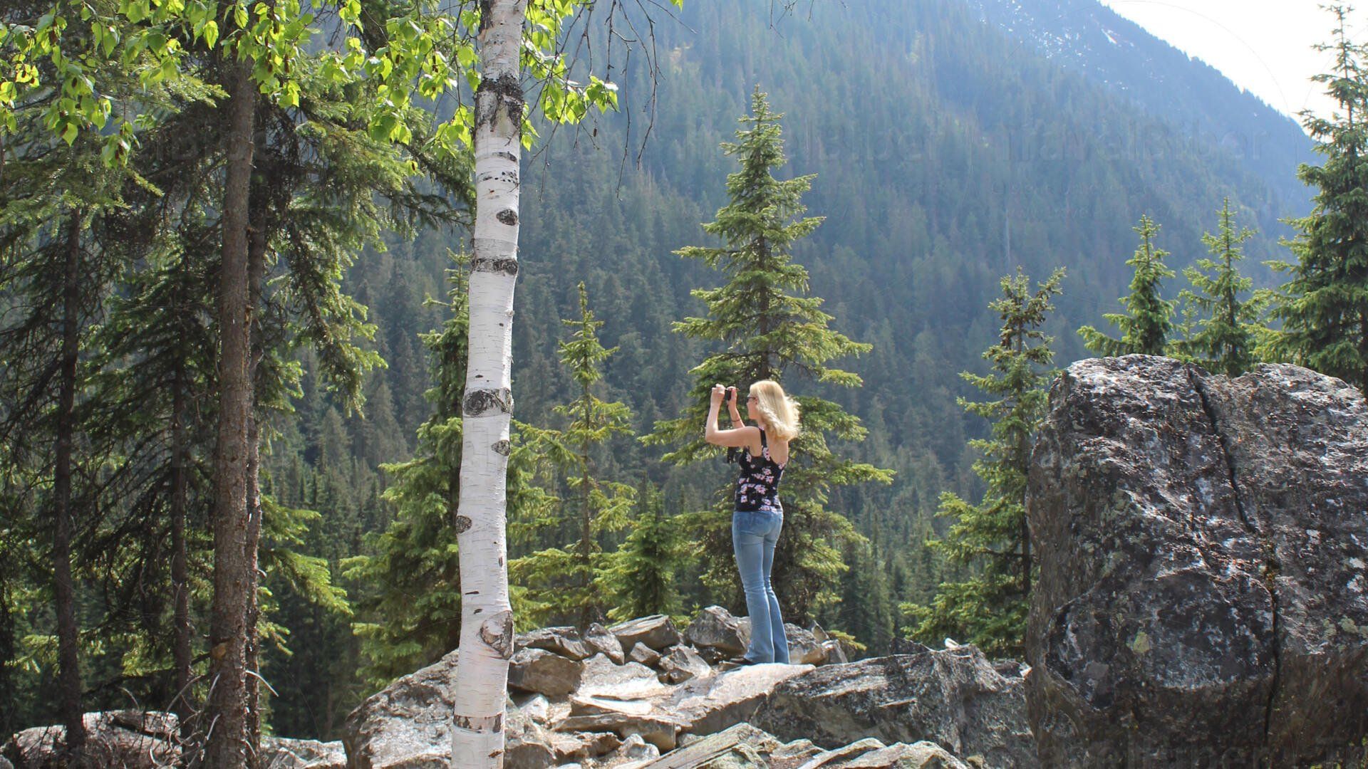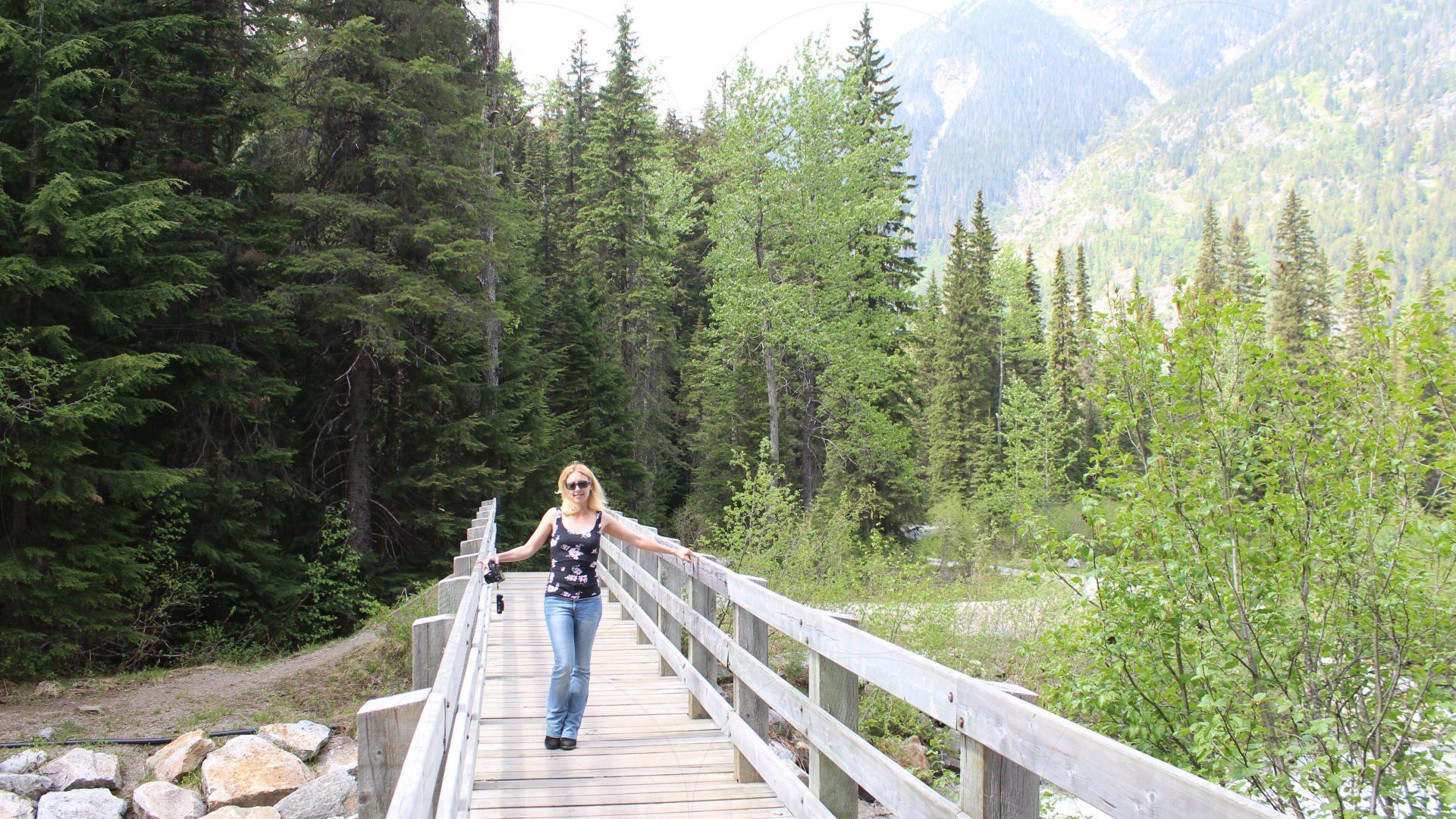 Wanderung auf einem Trail entlang der alten Schienen der Canadian Pacific Railway.