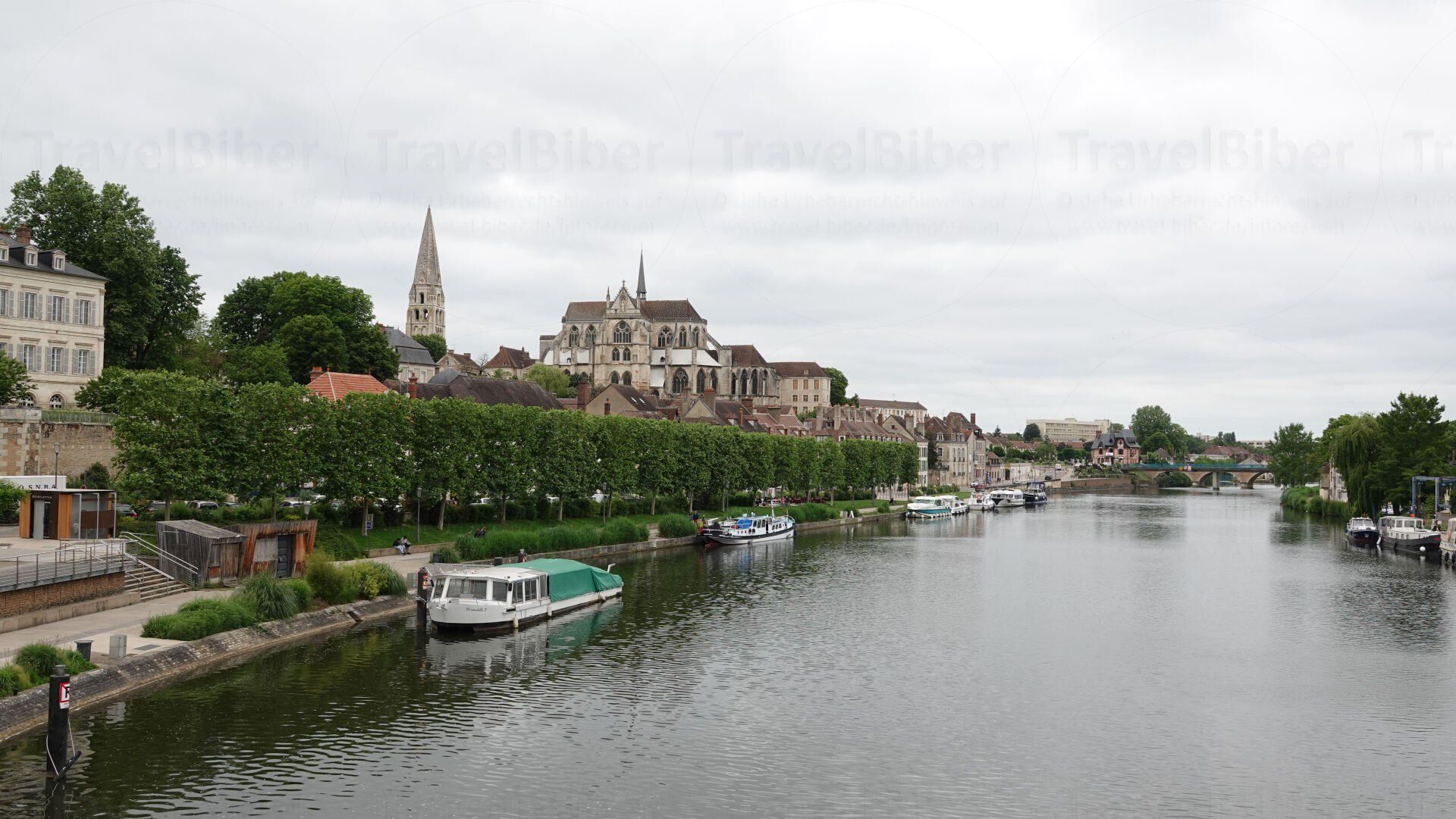 Blick vom Wasser aus auf das Panorama der Stadt inklusive Cathédrale St-Étienne.