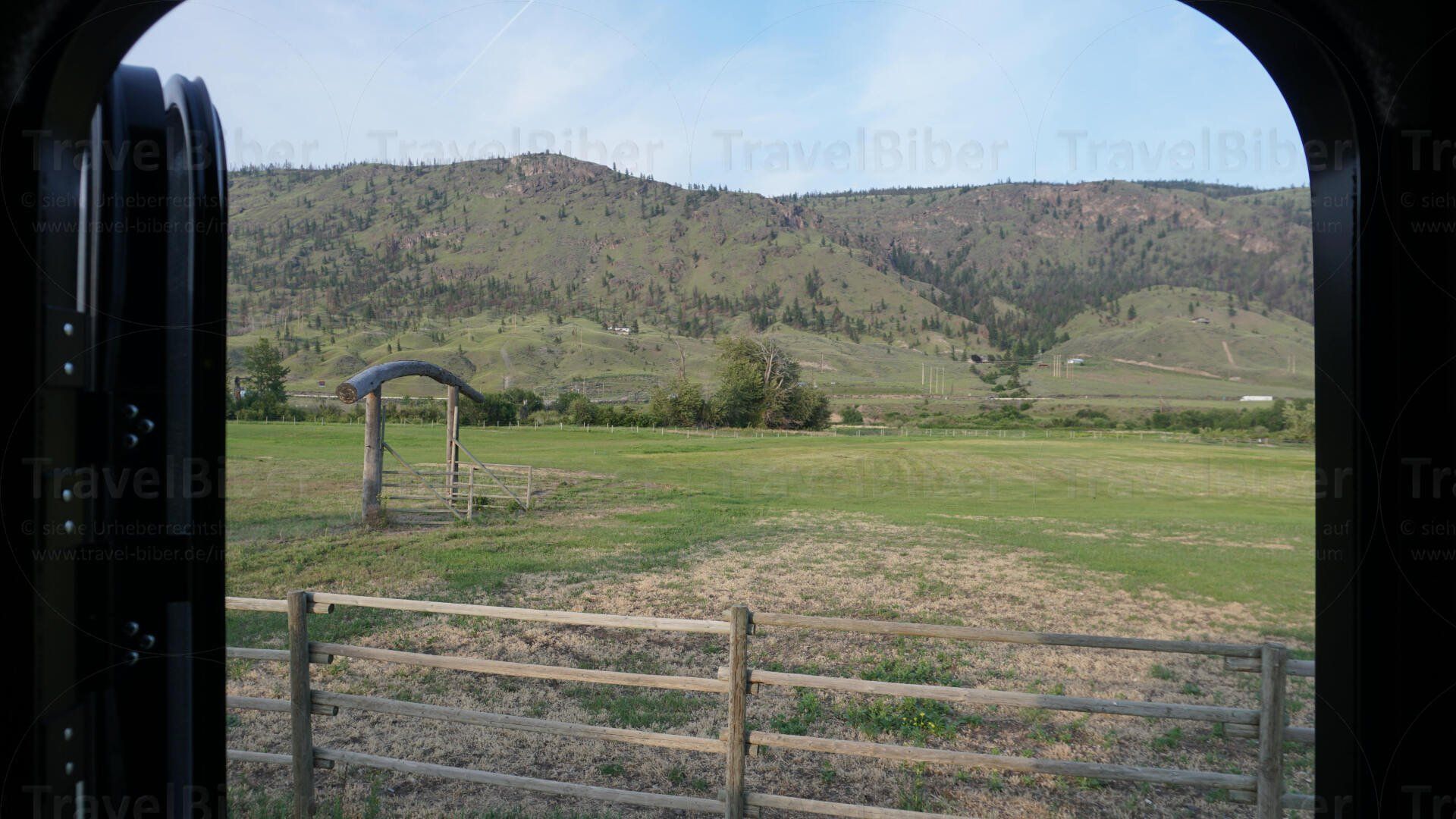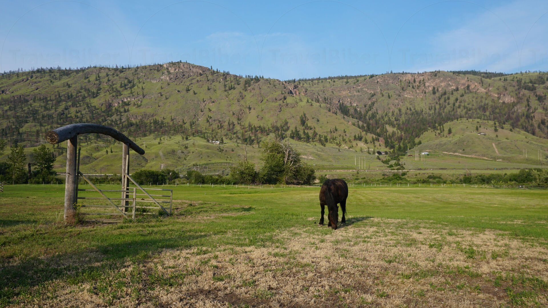 Campen direkt auf einer Ranch mit Blick auf eine Pferdeweide, einfach toll.