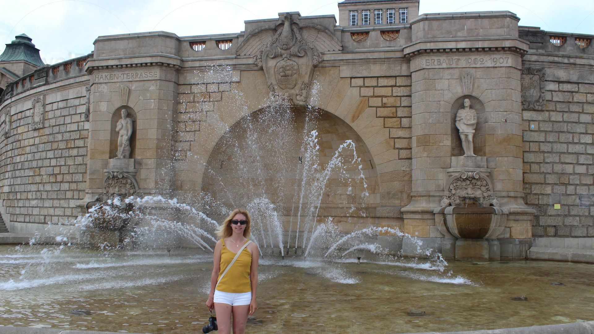 Der Brunnen an der sog. Hakenterrasse, alles aus dem gelben Sandstein.