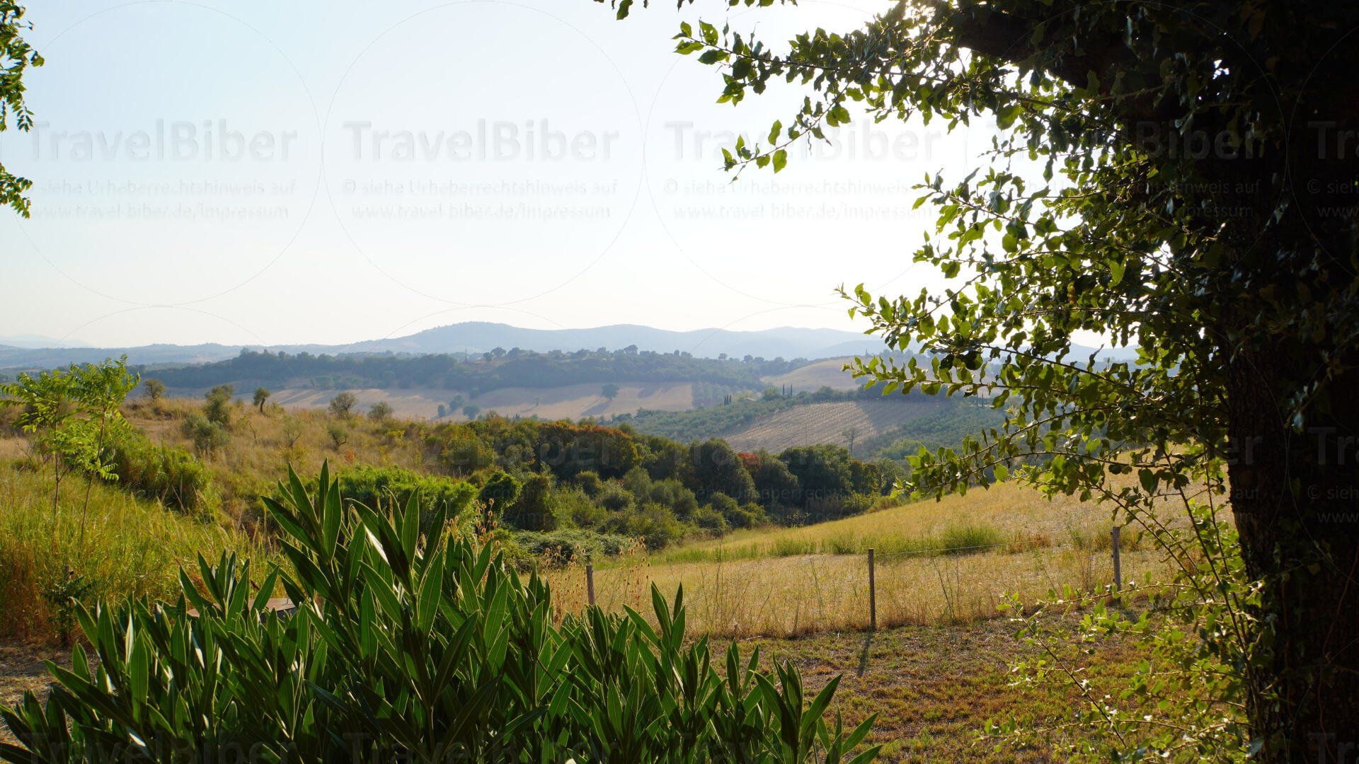 Blick übers toskanische Land vom Ort Casale Marittimo