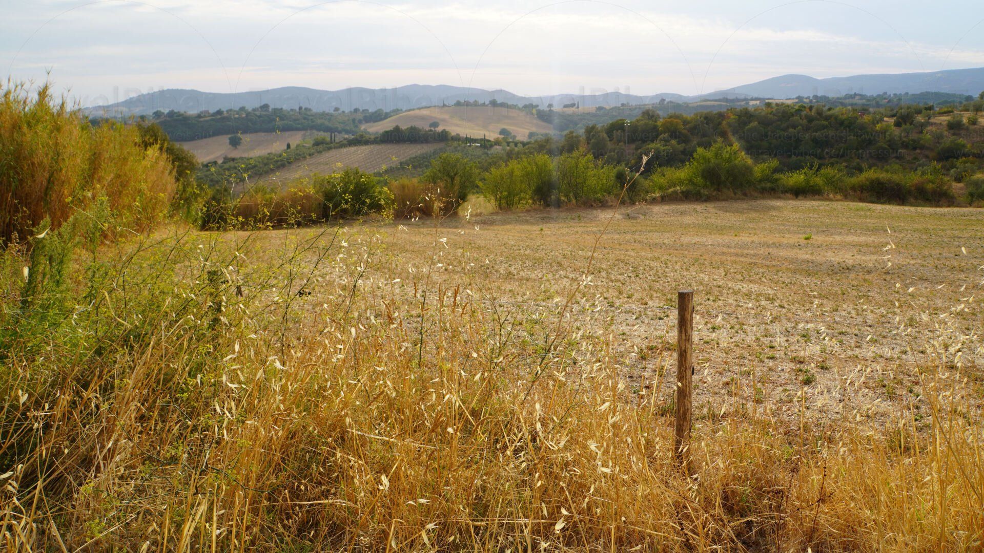 Trockene karge Herbstlandschaft in der Provinz Pisa