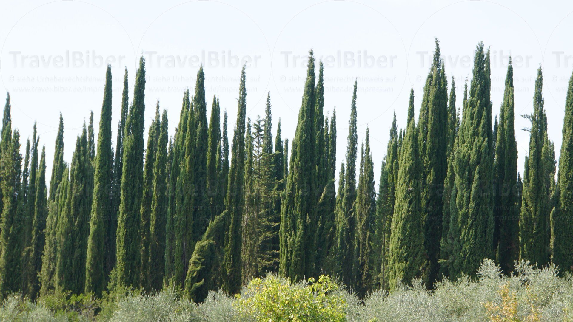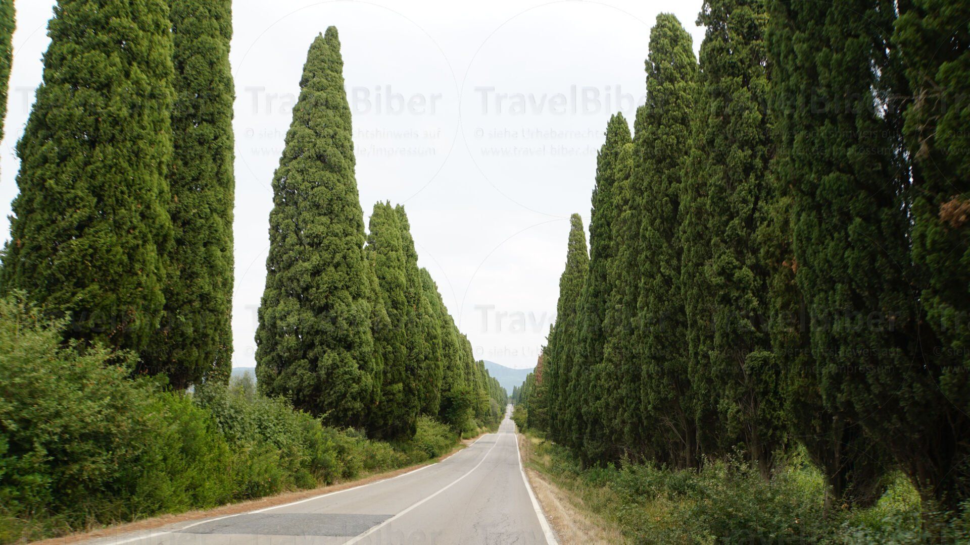 Zurück im Landesinneren führt der Weg durch die berühmte Zypressenallee vor dem Weinort Bolgheri. Bolgheri
