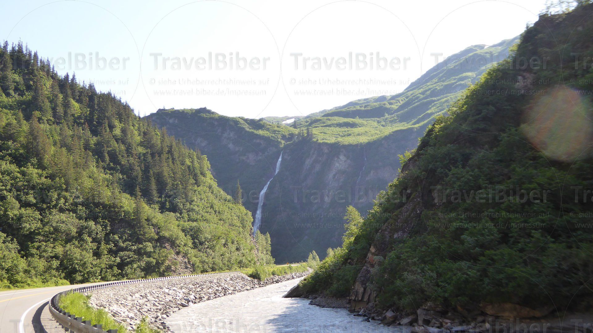 auf dem Richardson Highway (Highway 4) durchs Küstengebirge, vorbei ein tollen Wasserfällen, Bergseen und Gletschern.