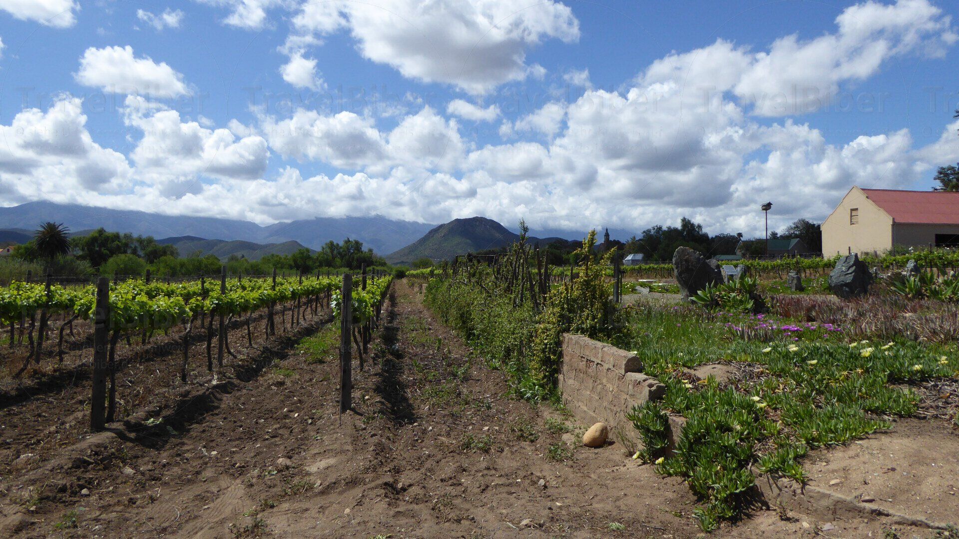 aus führt mitten durch trockenes karges Land bis zur nächsten Bergkette und man fühlt sich fast ein bisschen wie im Westen der USA. Die Straße führt kerzengerade durchs Land, rechts und links der Straße nur flache vertrocknete Büsche und trockene rote Erde; im Hintergrund liegt die rötlich schimmernde Bergkette. Schießlich taucht die Stadt Calitzdorp